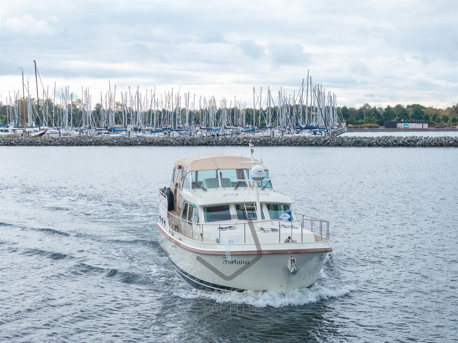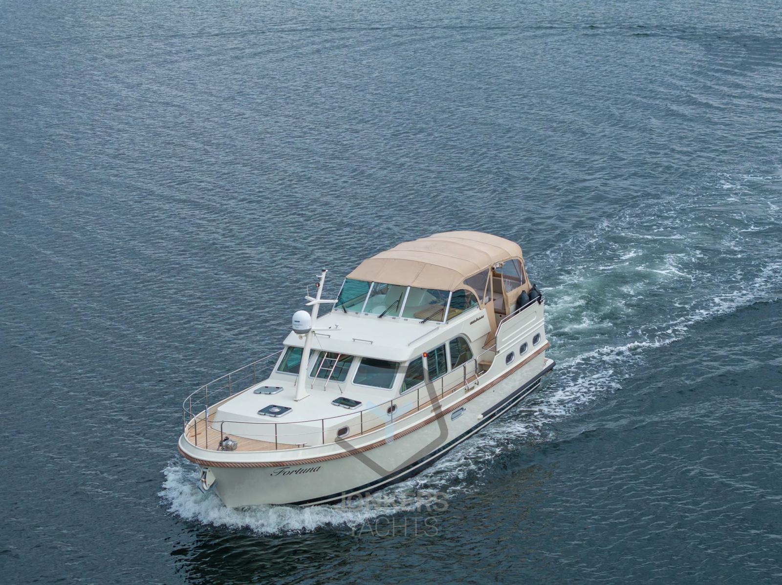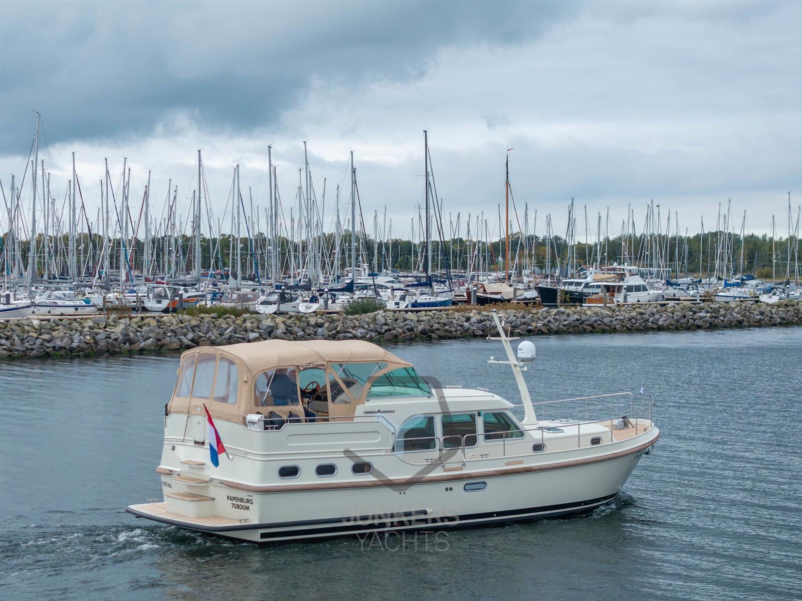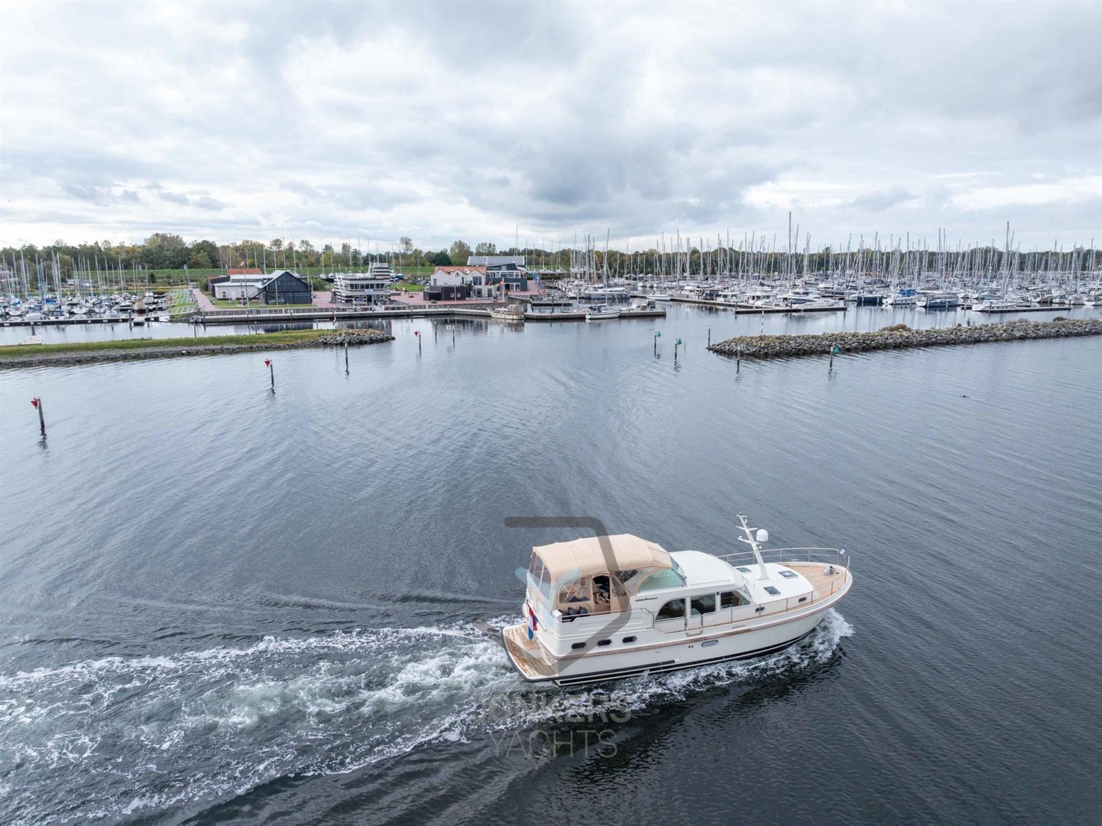 Ce navire dispose de teck sur le pont arrière, plats-bords et pont avant, pilote automatique, traceur de cartes, sorties d’air chaud au poste de pilotage extérieur, tiroir réfrigérateur en supplément dans le salon, éclairage indirect, etc.