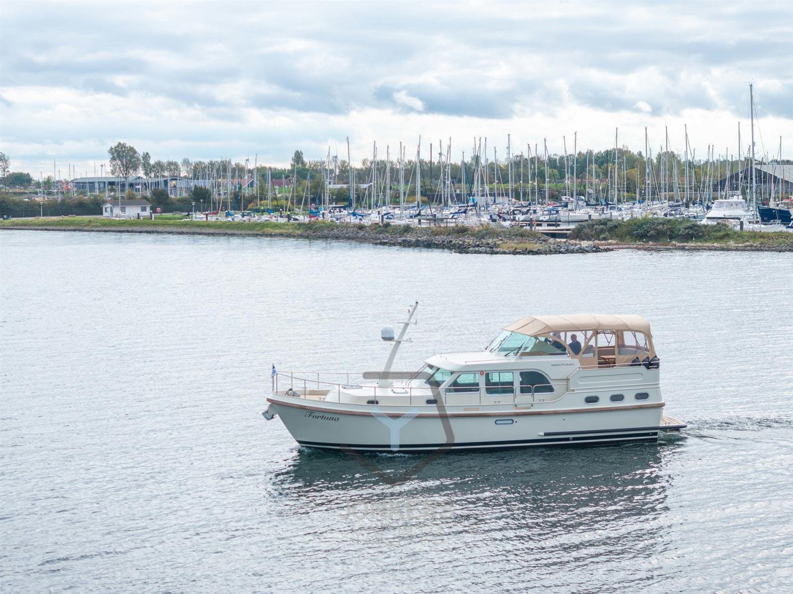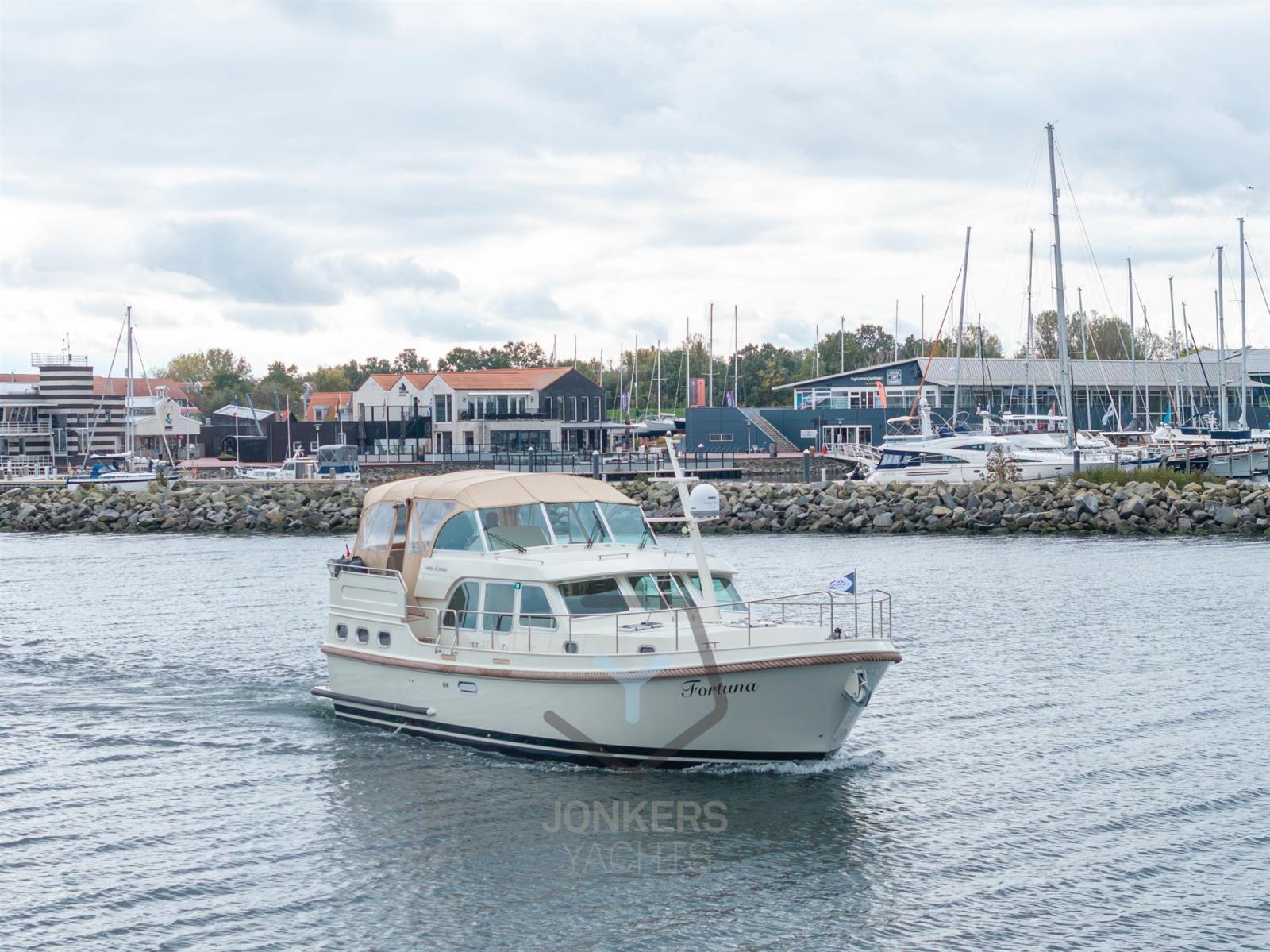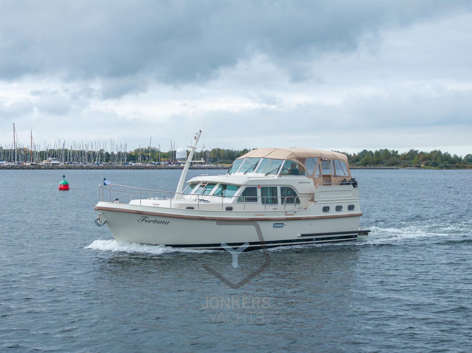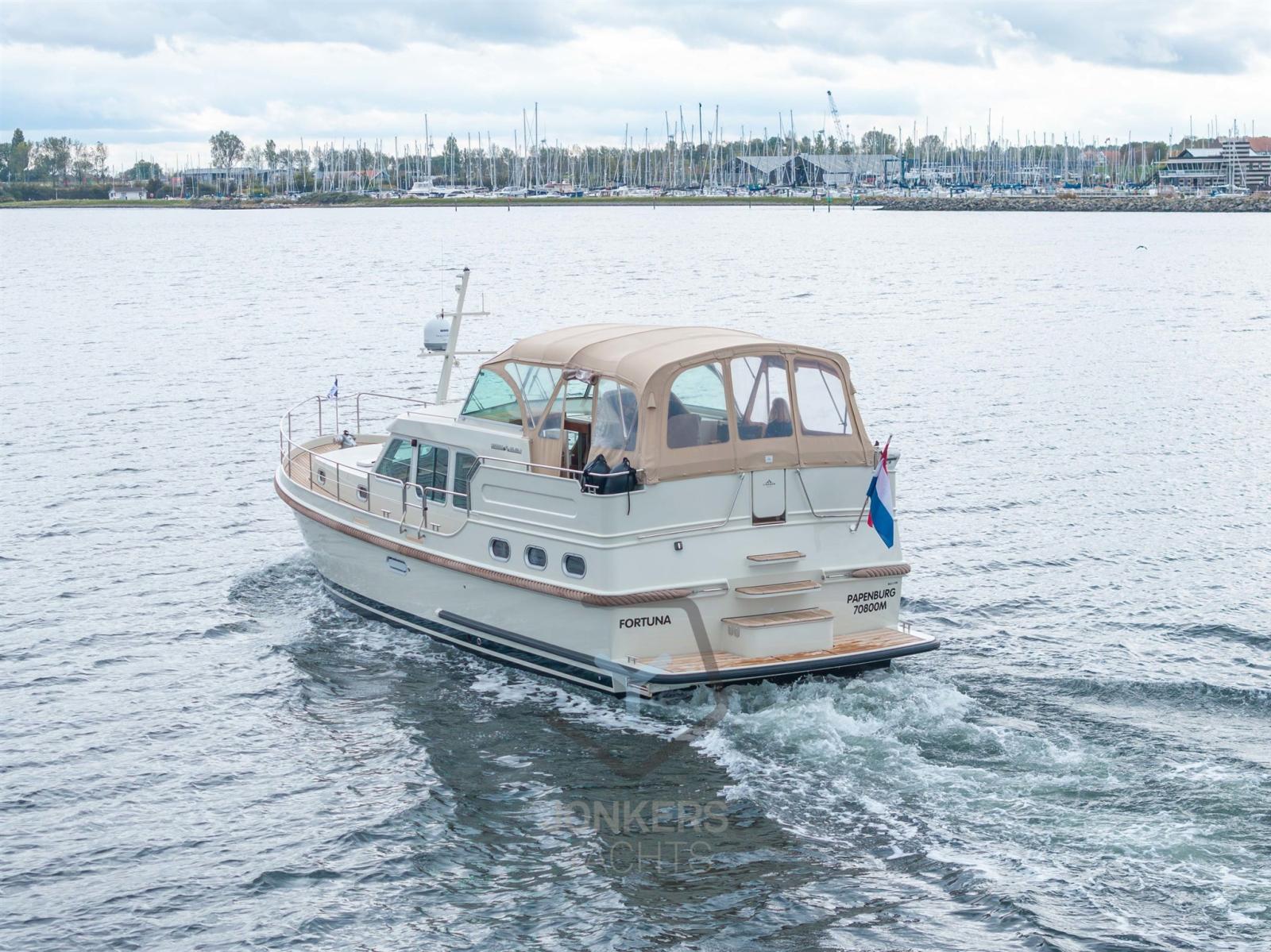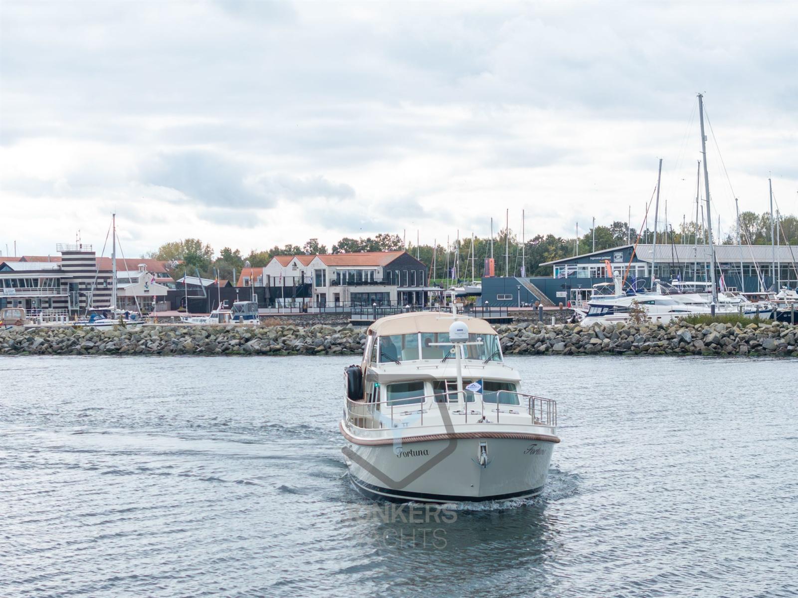 Ce navire dispose de teck sur le pont arrière, plats-bords et pont avant, pilote automatique, traceur de cartes, sorties d’air chaud au poste de pilotage extérieur, tiroir réfrigérateur en supplément dans le salon, éclairage indirect, etc.