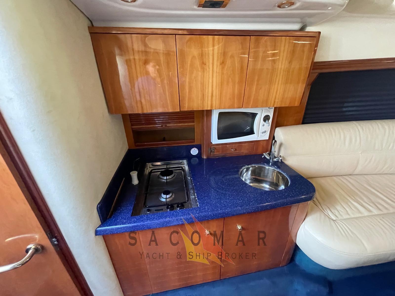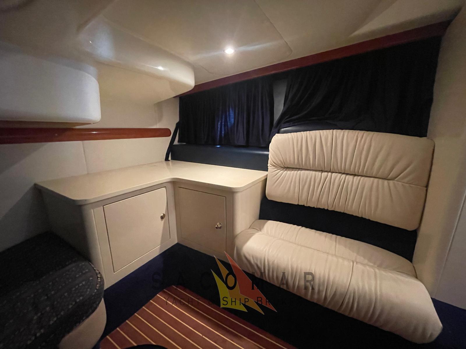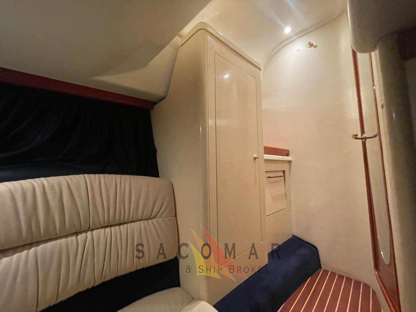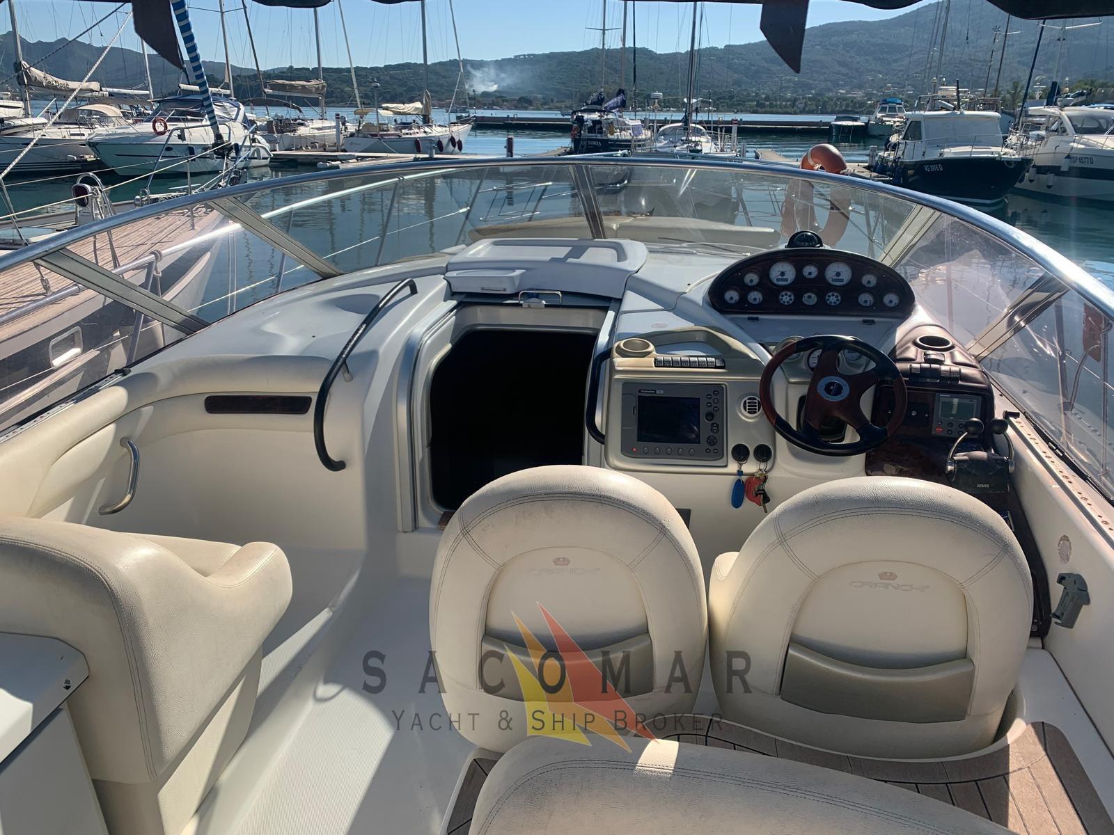 Eau sous pression, Douche de cockpit (calda e fredda), Propulseur d'étrave (QL), Phare de poursuite, Flaps électriques, Garage à annexe, Lavabo dans le cockpit, Passerelle (Besenzoni), Plateforme arrière (teak), 2 Pompe de cale électrique (Johnson), Cockpit en teck, Prise de quai, Guindeau électrique (Lofrans con telecomando), Echelle de bain, table de cockpit, Corne.