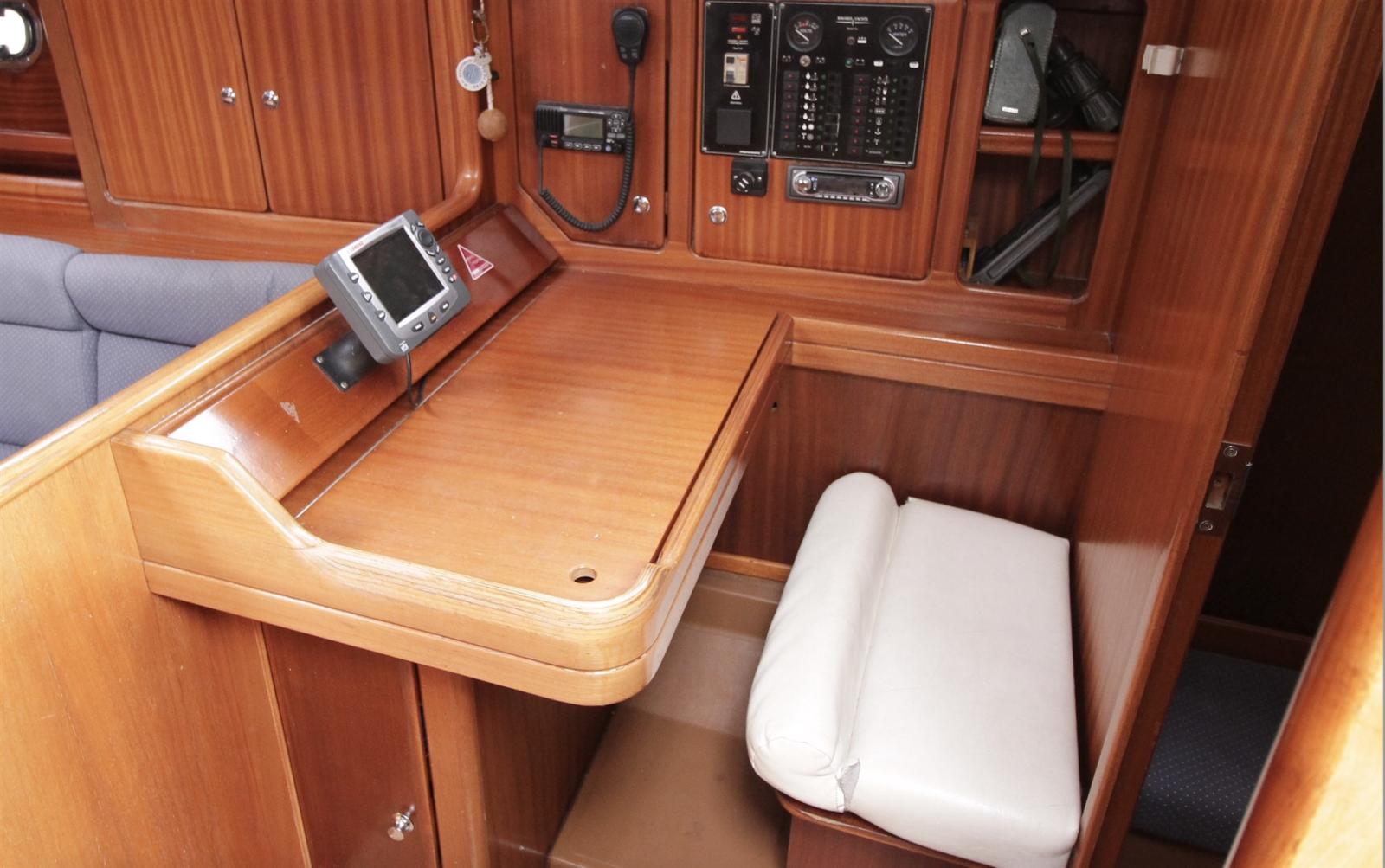 Indicateur d'angle de barre, DSC VHF (ICOM MC 3230), GPS (lorentz X7 compact), Loch (Raymarine ST60), Pilote automatique (neuf : Raymarine P70, calculateur ACU200, unité puissance hydraulique), Sondeur (Raymarine ST60), Anémomètre/Girouette (Raymarine I60 remplacé).