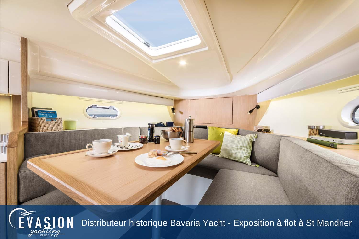 À l’intérieur, le S30 propose une cabine double confortable, un carré modulable et une salle d’eau équipée, optimisant chaque recoin pour offrir un excellent confort à bord. Son design moderne et ses finitions soignées reflètent tout le savoir-faire du chantier allemand Bavaria Yachts.