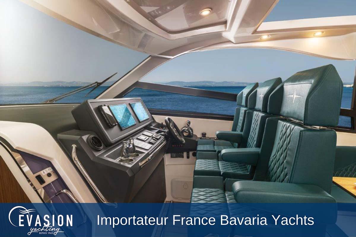 Distributeur officiel Bavaria pour l’ouest Var, Evasion Yachting vous accompagne dans toutes les étapes de votre projet : financement (LOA, leasing), assurance, solutions de place de port et reprise de votre bateau actuel. Notre équipe technique assure également l’entretien et l’installation d’équipements adaptés à vos besoins.