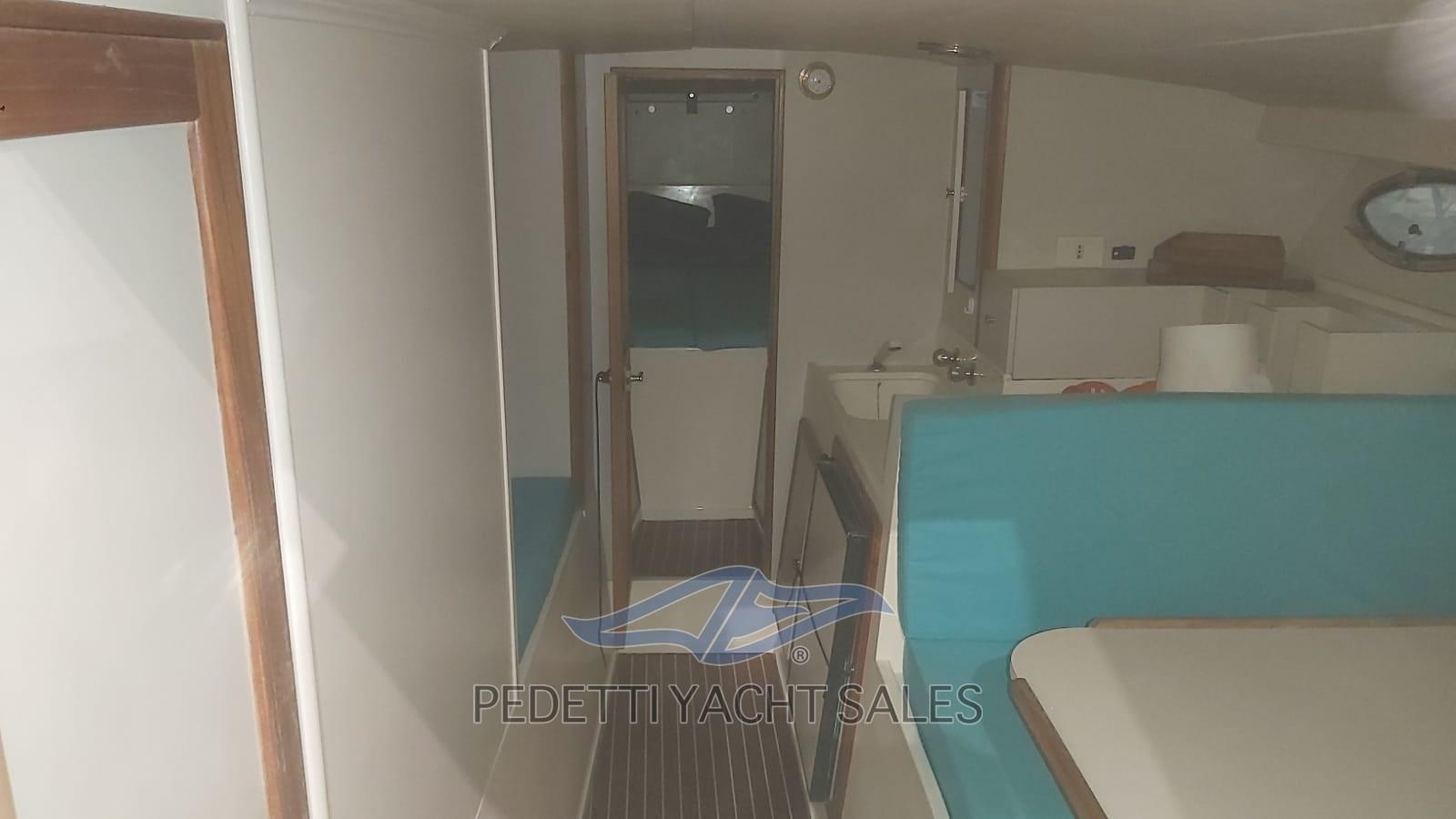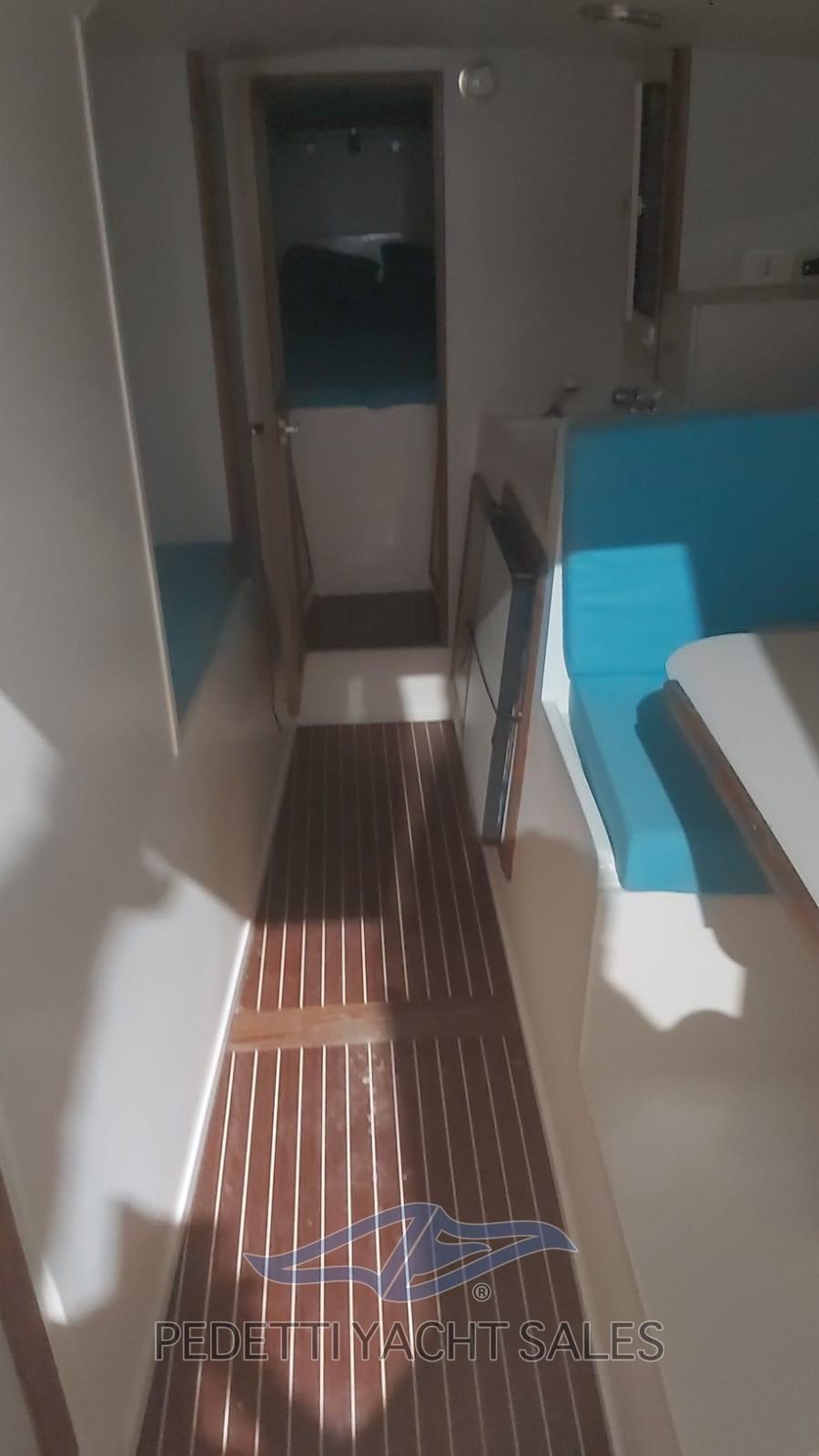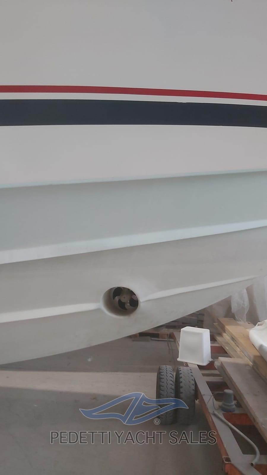 Alarme moteur, Alarme de pompe de cale, Eau sous pression, 3 Batteries, Douche de cockpit, Flaps hydrauliques, Extincteur(s) fixe(s), Plateforme arrière, Pompe de cale automatique, Pompe de cale manuelle, Porte latérale, Prise de quai, Onduleur, Guindeau électrique, Echelle de bain, table de cockpit, Corne.