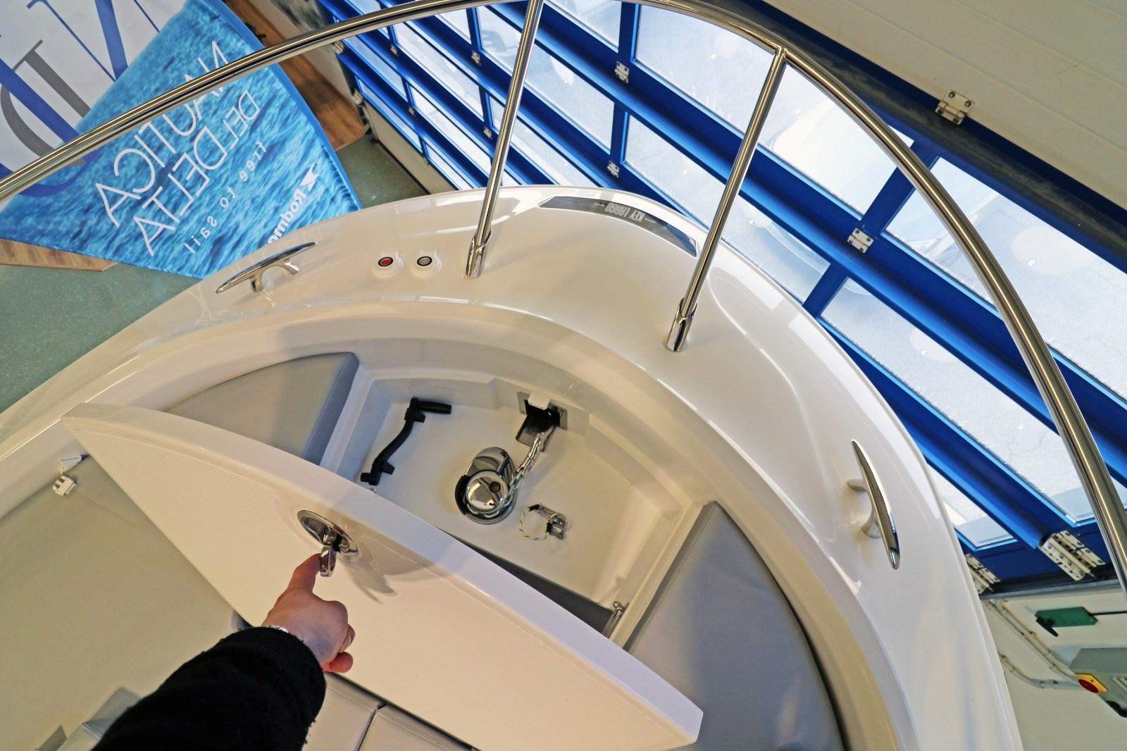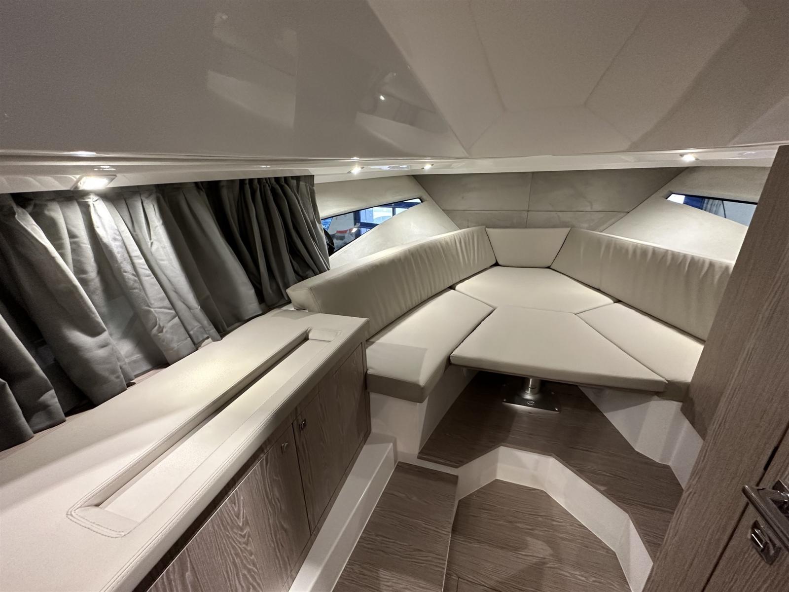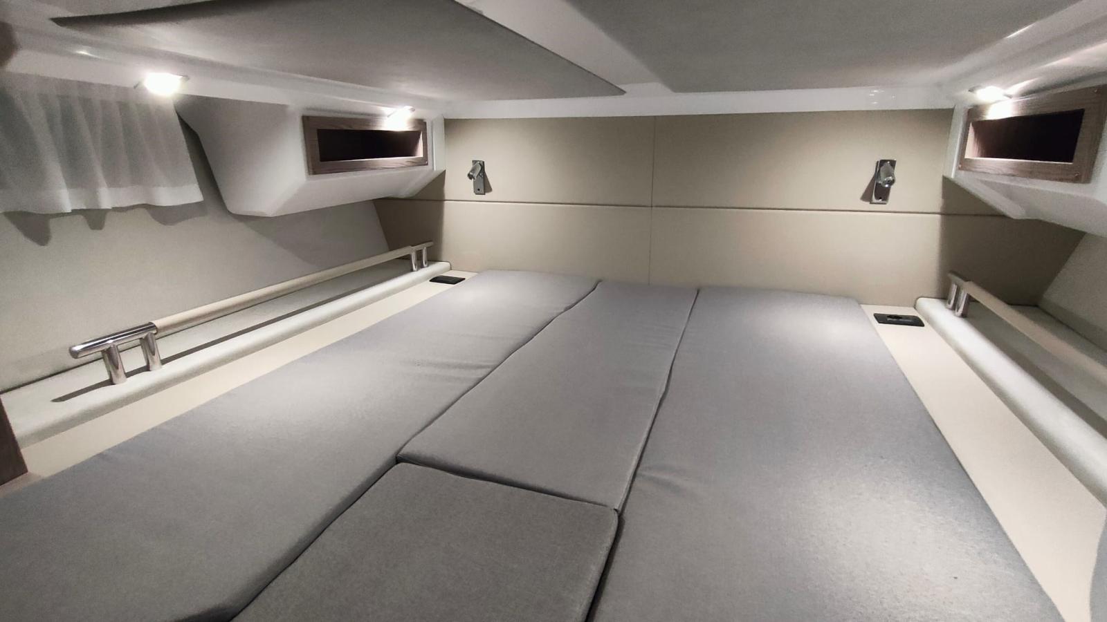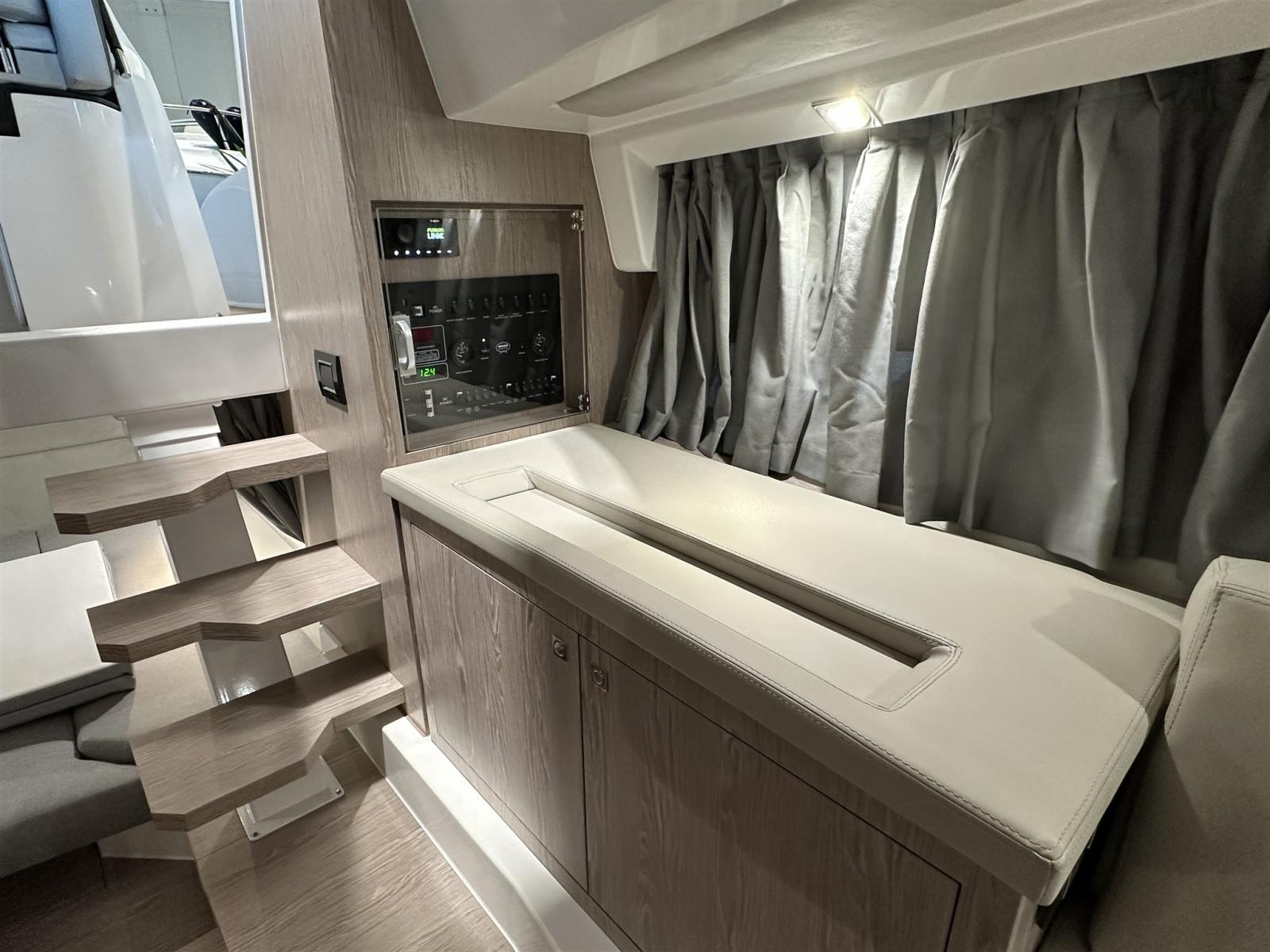 Le pack croisière comprend un traceur Garmin 12 pouces, un propulseur d’étrave, une chaudière, une batterie supplémentaire, un coin convertible