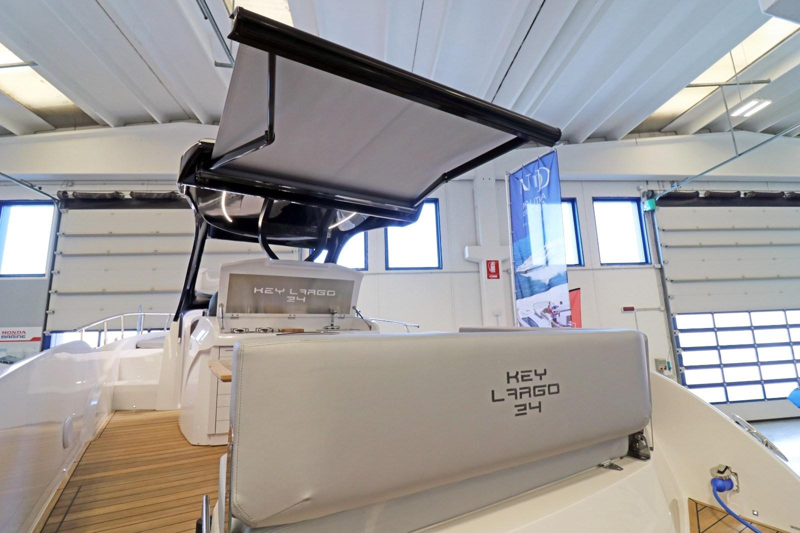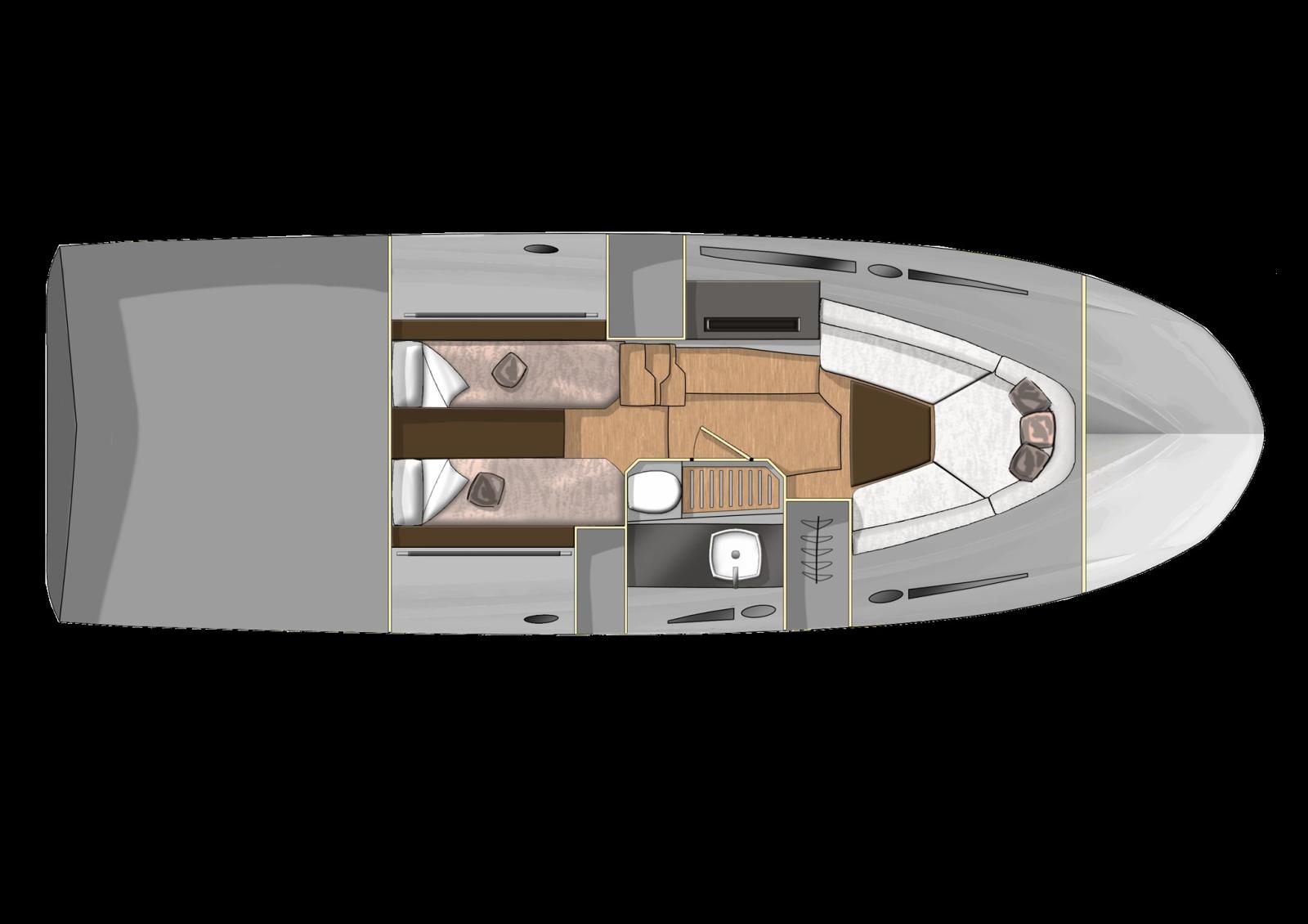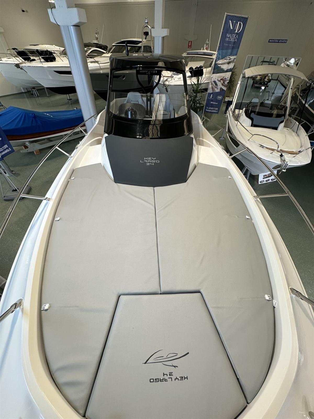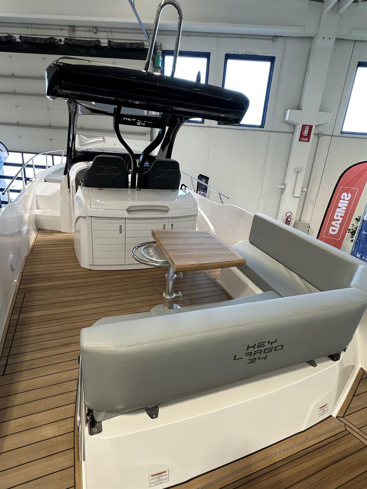 Cockpit en teck, planchers intérieurs en bois, Ttop avec auvent électrique arrière, réfrigérateur dans le cockpit, cuisinière à gaz, plates-formes arrière supplémentaires, réfrigérateur dans la dinette, Vhf, kit d’amarrage, transport, lancement