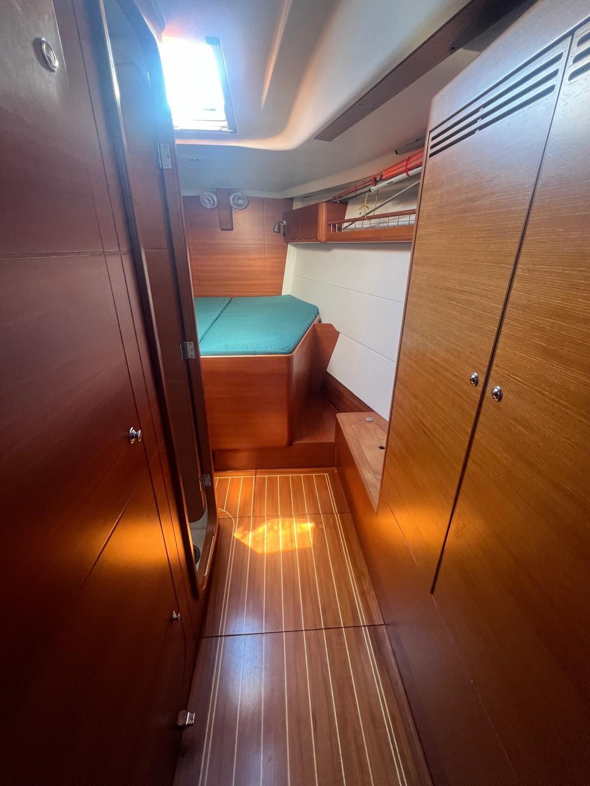 L’intérieur a l’aménagement classique avec 3 cabines et 3 salles de bains, la cabine principale avec lit double et douche privée.