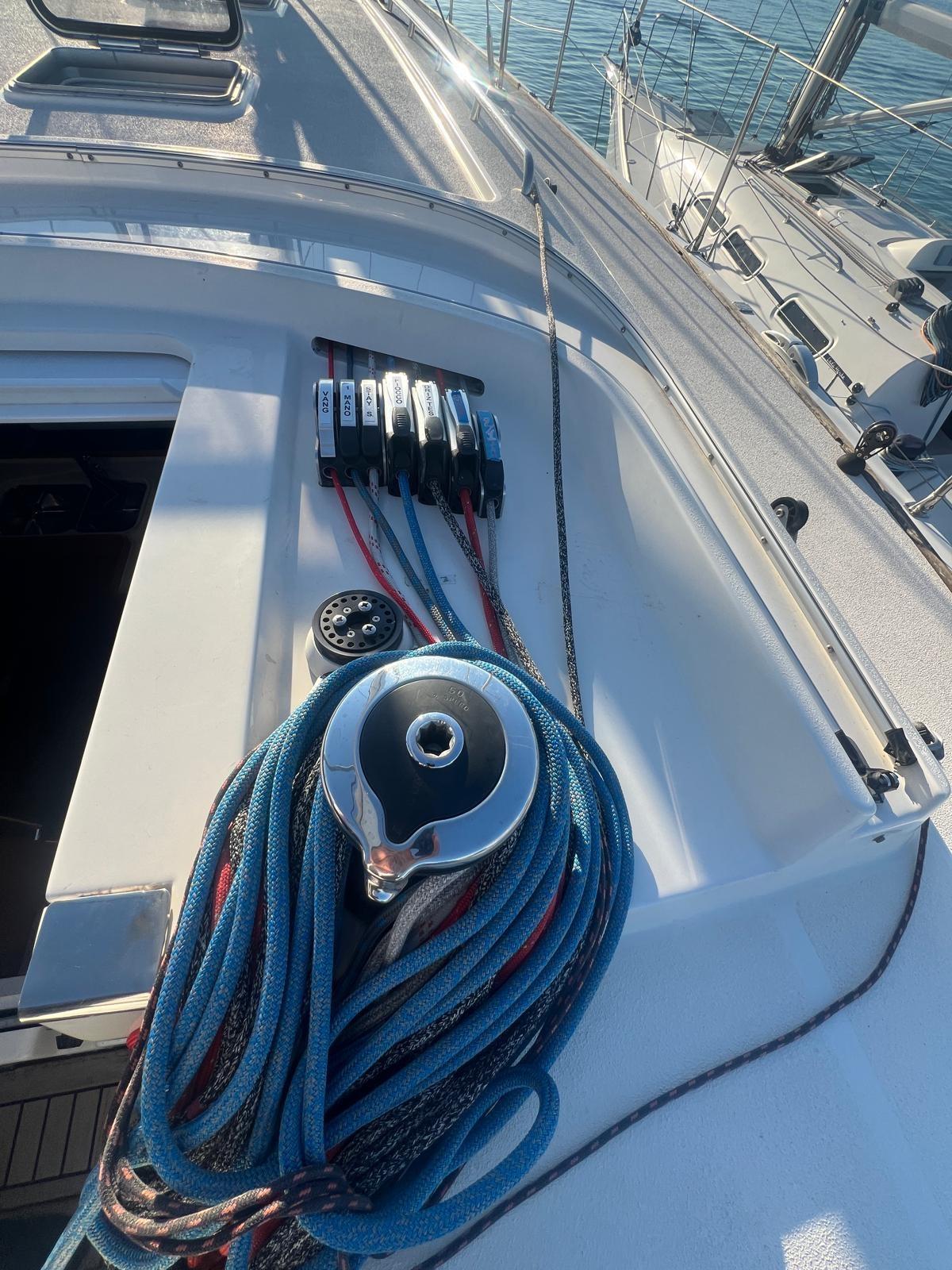 4 Batteries (2024), Double barre à roue, Cockpit en teck, Prise de quai, Connexion eau sous pression à quai, Guindeau électrique, Annexe (+ fuoribordo), 2 Winch électrique.
