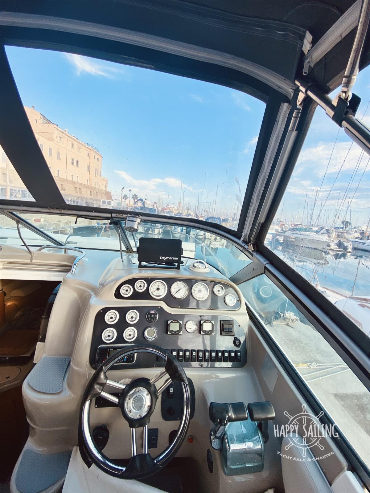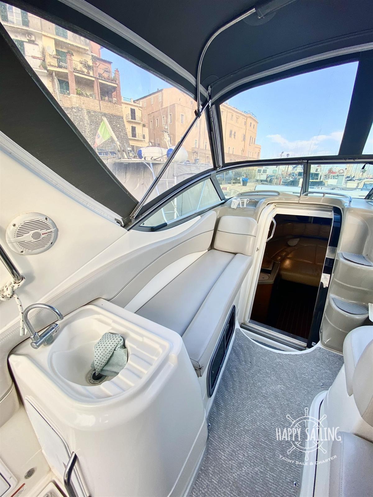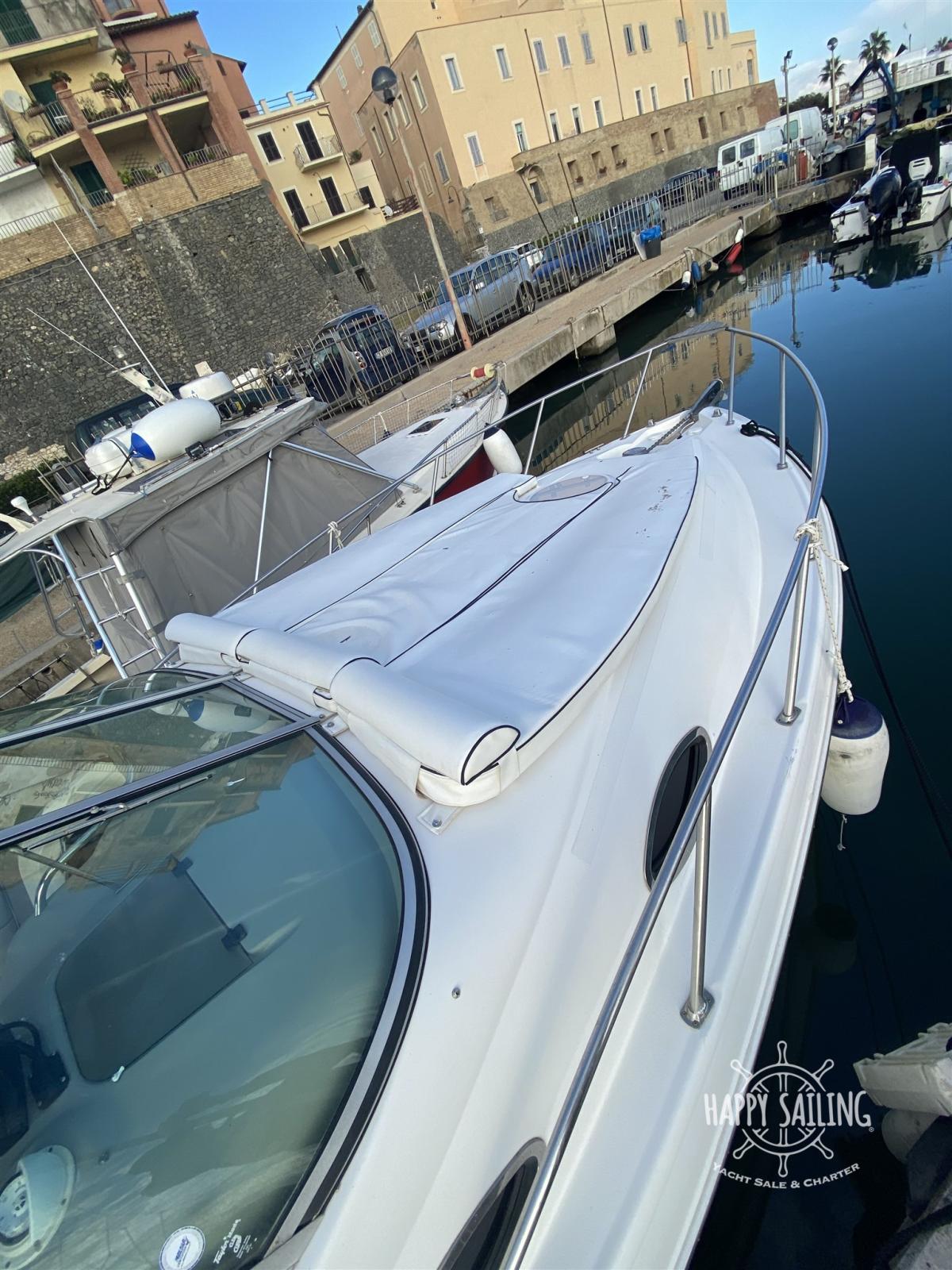 Excellent bateau de 30 pieds, avec de grands espaces intérieurs et extérieurs d’une capacité de 10 personnes. Cockpit spacieux avec table, lavabo et canapés avec coussins en cuir et grands coussins de bain de soleil à l’avant. Plate-forme de bain spacieuse pour porter l’annexe, arceau de sécurité avec système de sonorisation et d’éclairage, auvent supérieur et fermeture totale pour le camping nautique et pour pouvoir utiliser le bateau même en hiver.