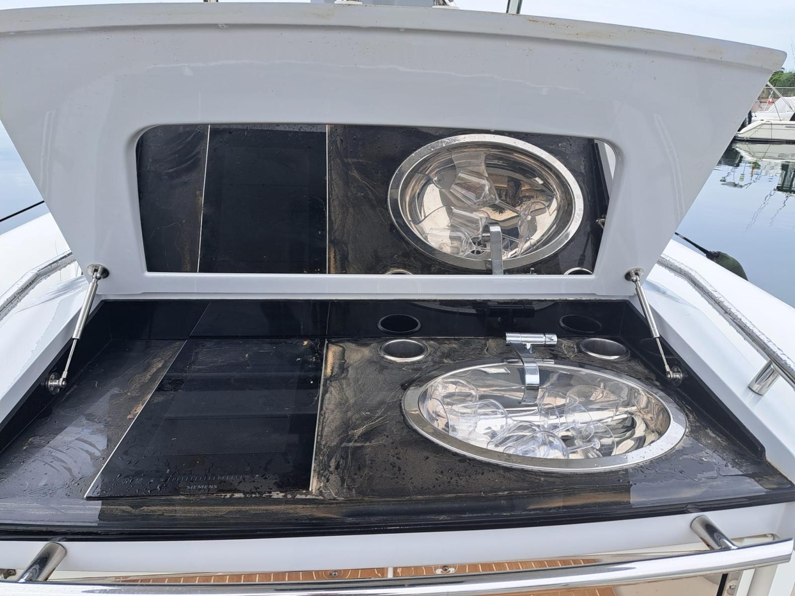 2019 Vedovien à moteur Mito 45 EFB avec deux générateurs Mercruiser HTO 8.2 Bravo Three Coelmo de 3,5 Kw. ; Trim électronique des pieds ; l’ancrage électronique via GPS ; table d’extérieur amovible ; siège pilote et copilote réglables électriquement ; revêtements intérieurs et extérieurs en teck synthétique ; bimini arrière rétractables ; des éponges sur des coussins extérieurs ; 50 m de chaîne et de chaîne ; pont en teck synthétique ; T-top composite avec bimini intégré ; gonflateur électrique ; 2 réfrigérateurs avant dans le cockpit en acier inoxydable Frigonautica ; Fourchette d’admission du cockpit Siemens ; Cafetière Nespresso ; kit de draps sur mesure ; Lumières de courtoisie LED sur les allées ; lumières sous-marines ; tous les bornes rétractables ; Menottes électroniques Mercury ; Système de manœuvre Axius Joystick pilotant Mercury ; Distillateur à onduleur