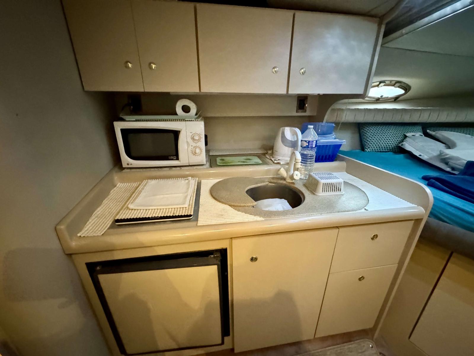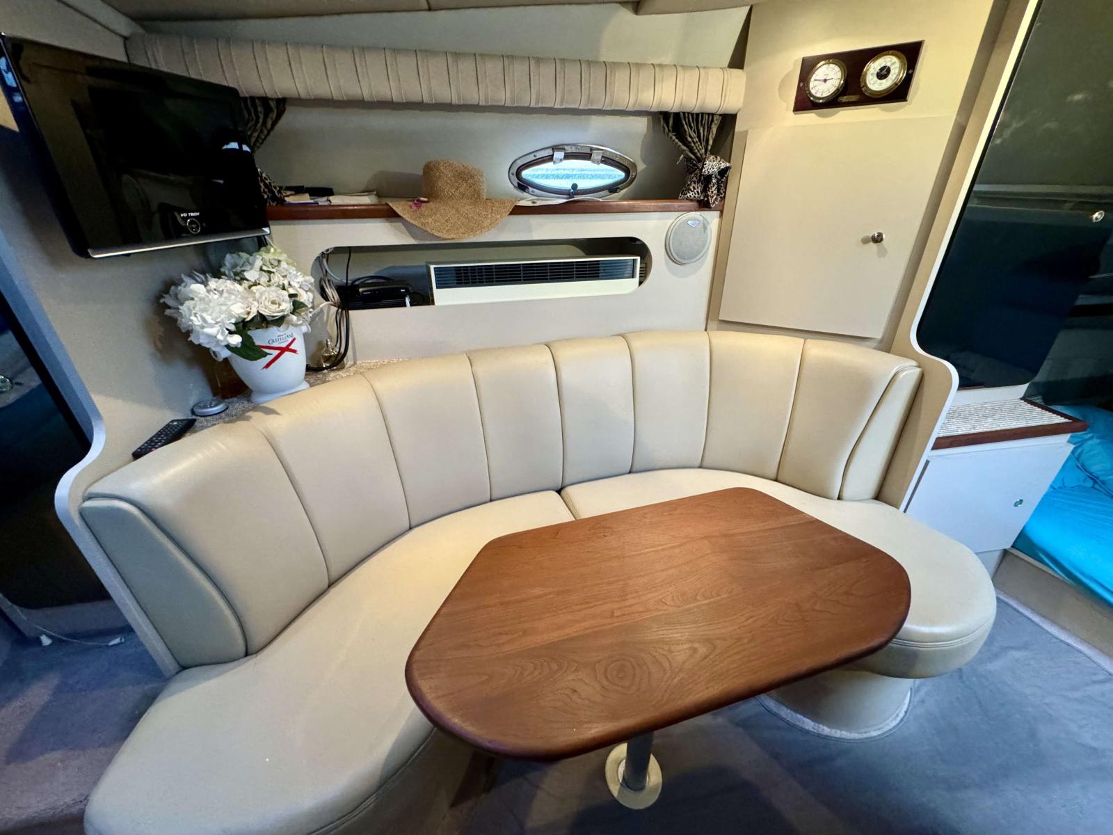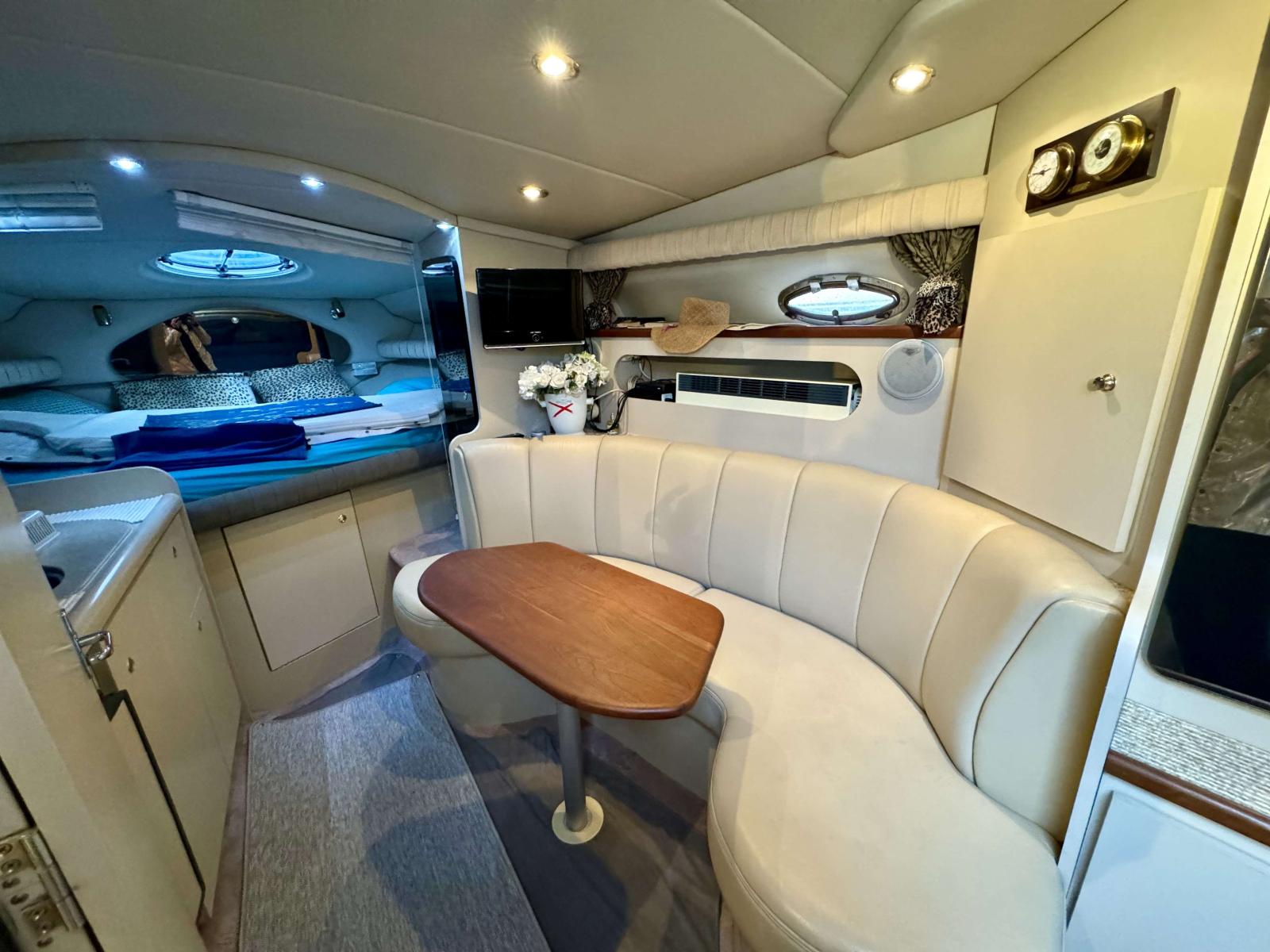 Cabines : Le Cruiser Yachts 3075 offre une cabine principale et une cabine à deux lits, permettant d’héberger confortablement jusqu’à 4 personnes. Les espaces intérieurs sont bien agencés, avec des matériaux de qualité pour un confort optimal. Il dispose d'un salon avec un coin cuisine (réfrigérateur, micro-ondes, cuisinière).