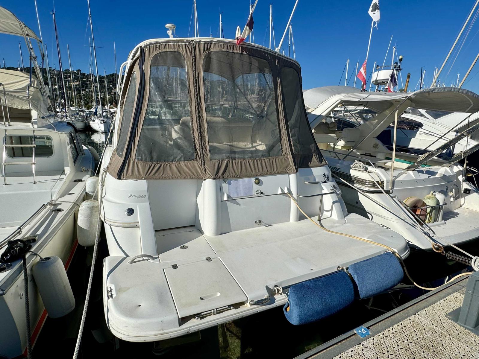 Ce Cruiser Yachts 3075 de 1999, remotorisé en 2024, est un modèle de bateau à moteur polyvalent, offrant à la fois confort, performance et élégance.