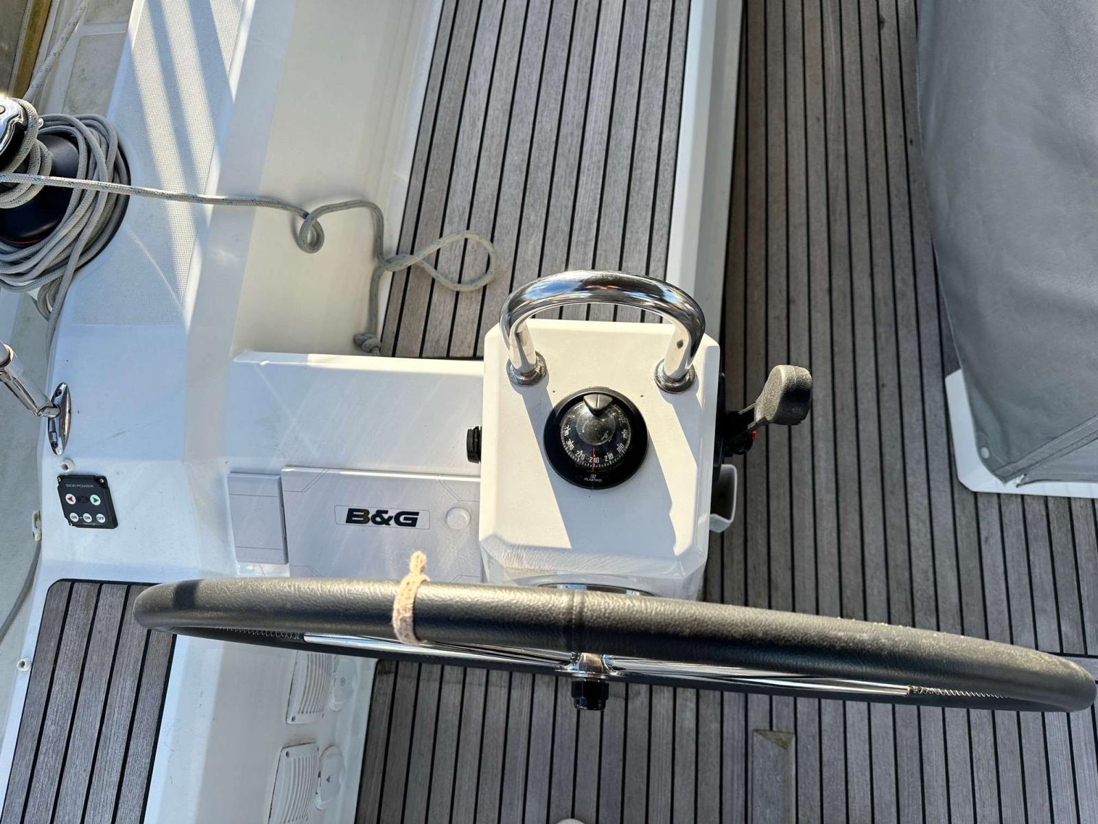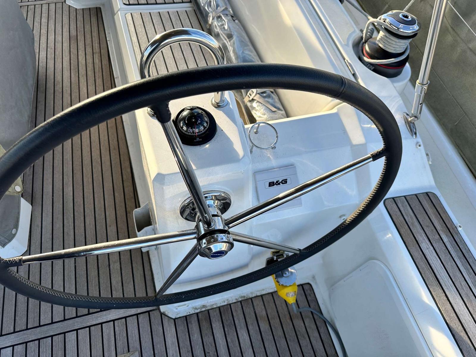 manoeuvre tribord manuel, Arceau de GV, table cockpit luxe-polyester, Propulseur d'étrave, prise eau douce de quai, réserve eau suppl 200L, Chauffage air pulsé, marches descente en bois, sommier à latte cabine avant, WC électrique, hélice tripales repliables, Radar et AIS 500, Pilote auto, fond de cockpit latté bois massif, projecteur de pont, Antenne TV et TV, armement semi-hauturier et radeau de survie, Kit mouillage complet avec Ancre Mantus 20Kg.