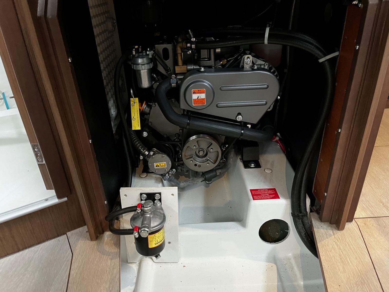 Motorisation YANMAR 29 CV Saildrive (320heures environ) avec hélice tripales repliables.