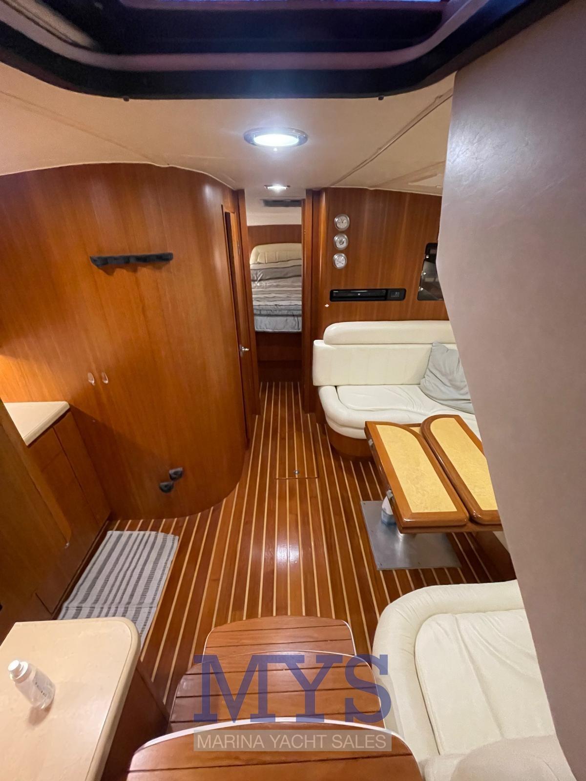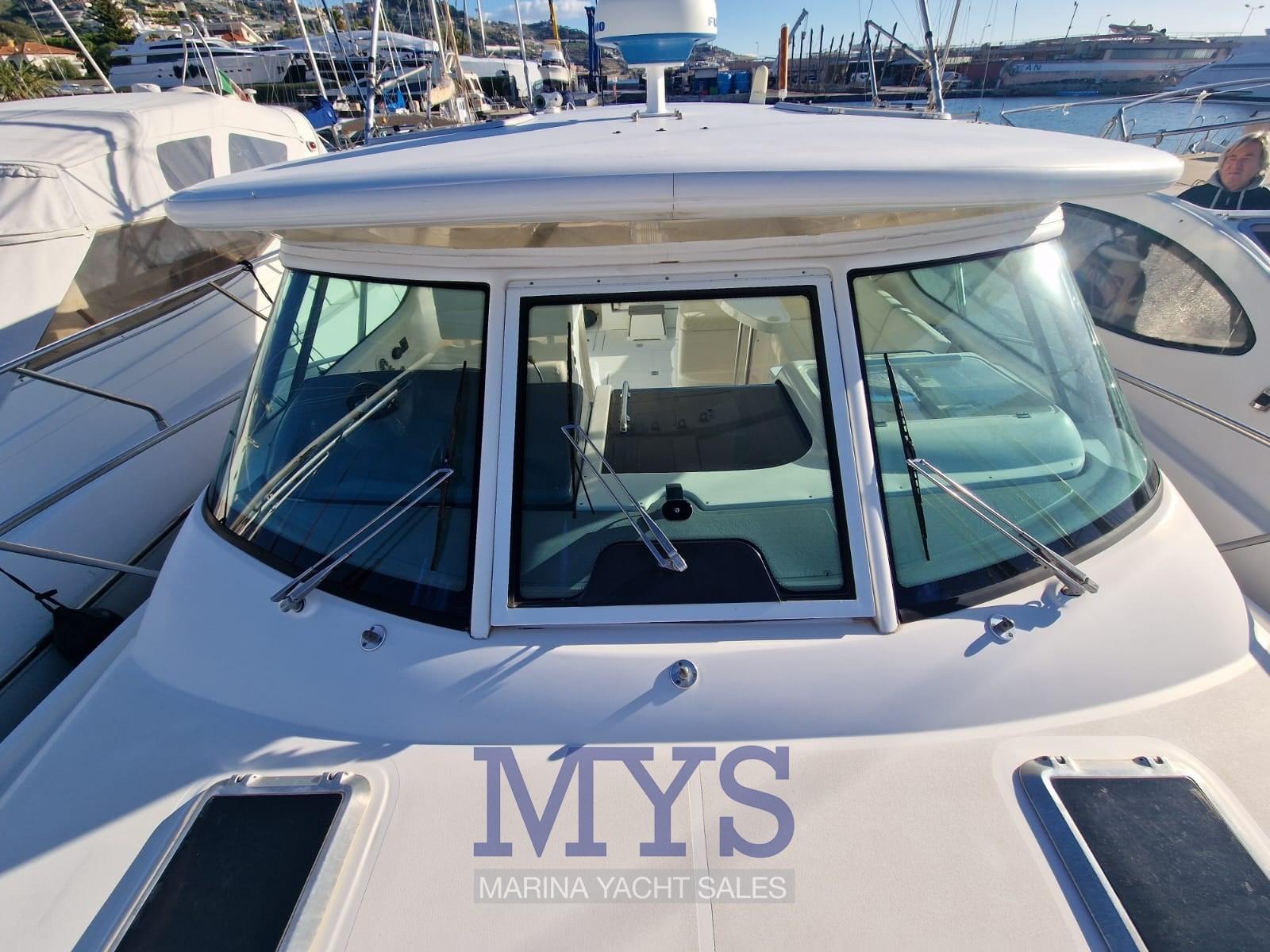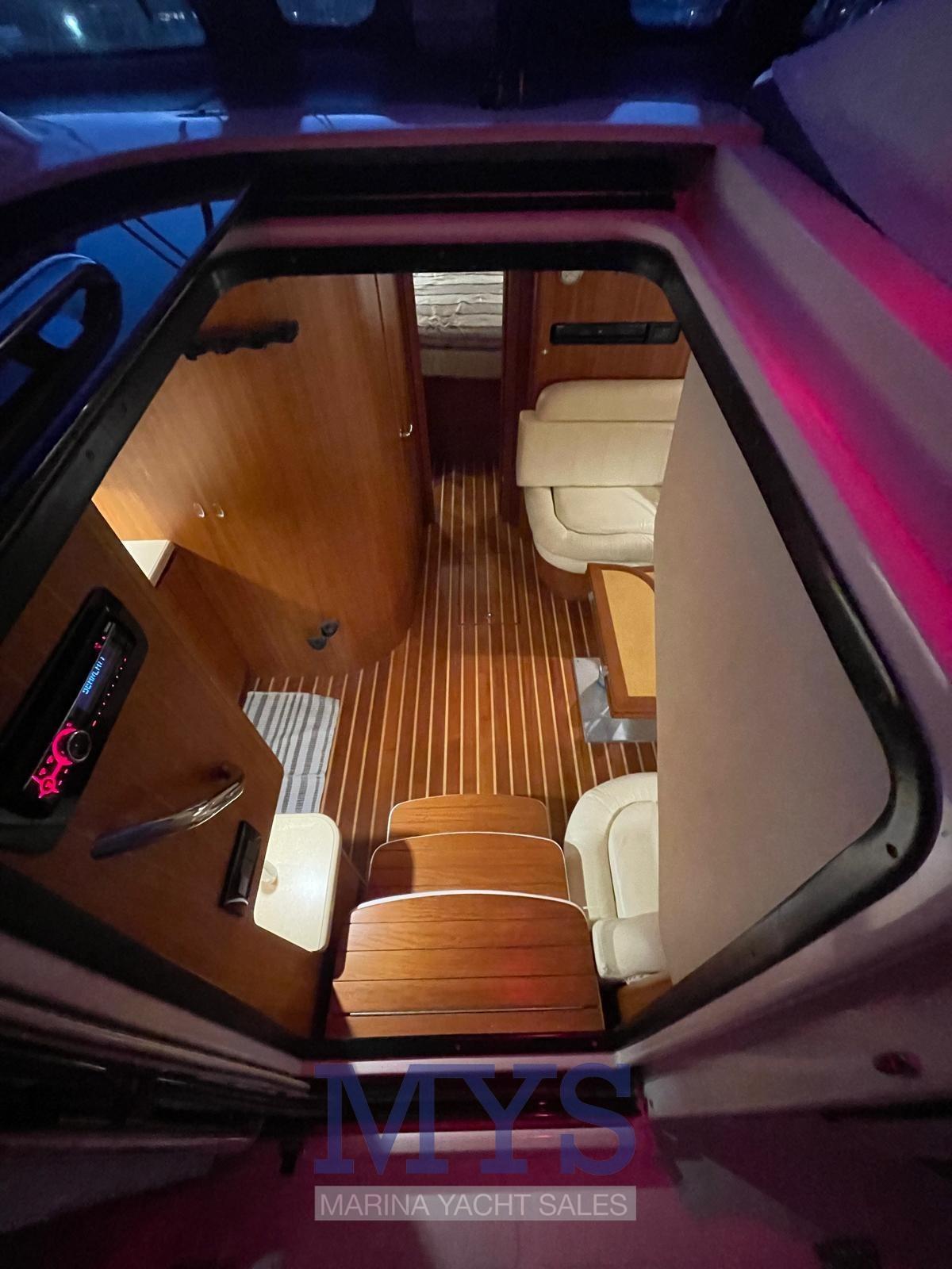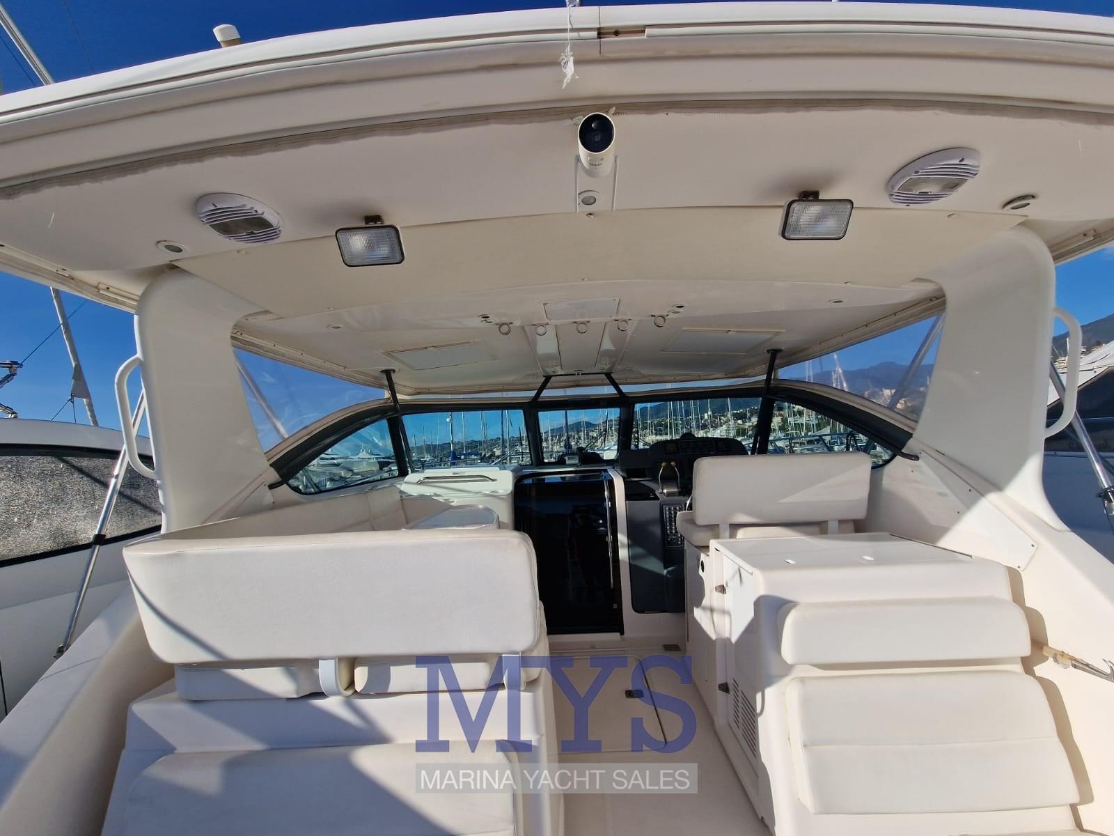 Alarme gaz, Alarme moteur, Alarme de pompe de cale, Ouverture du compartiment moteur électrique, Eau sous pression, Douche de cockpit, Phares fixes arrière, Flaps hydrauliques, Hard top, Extincteur(s) fixe(s), Indicateurs de flaps, Lavabo dans le cockpit, Éclairage de courtoisie, Spots sous-marins, Passerelle, Plateforme arrière, Pompe de cale automatique, Prise de quai, Guindeau électrique, Echelle de bain, table de cockpit, Winch électrique avant.