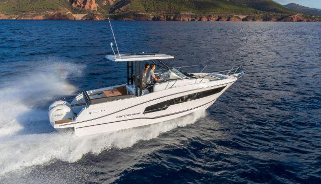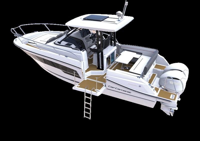 Lignes élancées, T-top, pare-brise en verre protecteur, grands vitrages de coque… ce bateau, inspiré de ses grands frères les Cap Camarat 10.5 WA et 12.5 WA, affiche un style contemporain, élégant et racé, synonyme également de sécurité et de plaisir pour toute la famille.