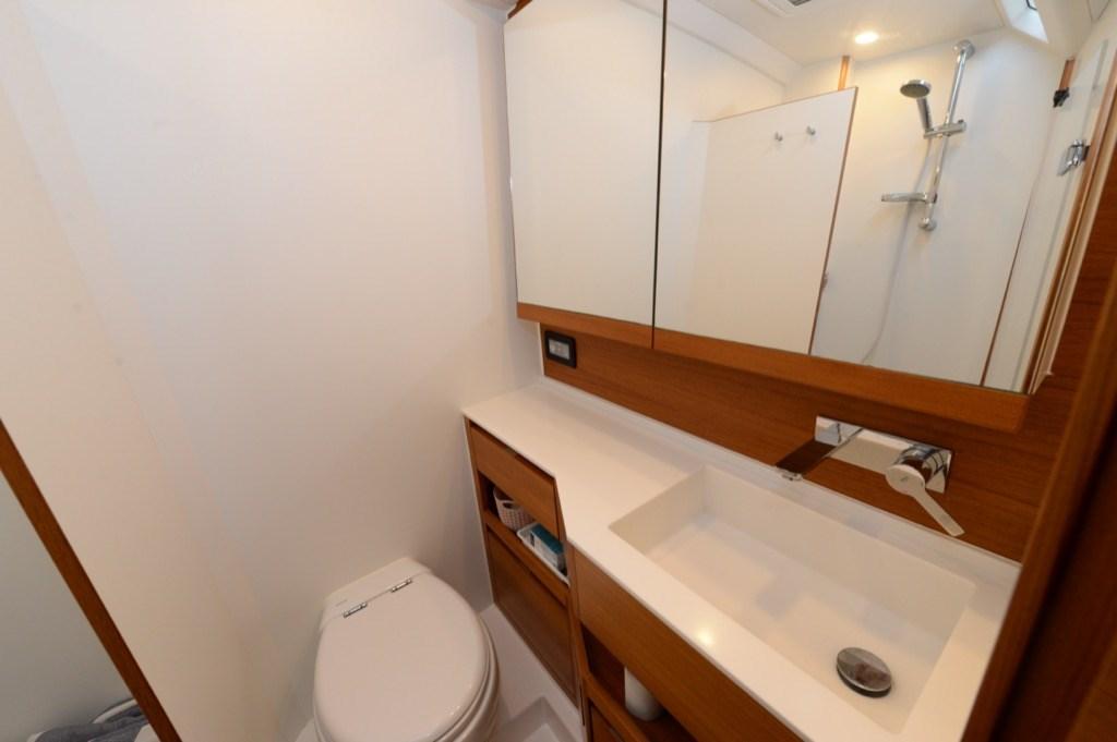 Air Conditionné (3 GRUPPI), Dessalinisateur (SCHENKER 100L), Cuve à eaux noires, Convertisseur (VICTRON COMBI), Plancher intérieur en bois (TEAK), Prises interieures 12v, Prises interieures 220v, Chauffage (EBERSPACHER), 2 Réservoir d'eau noire, 2 Toilettes électriques (TECMA).