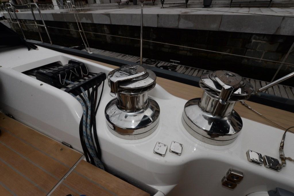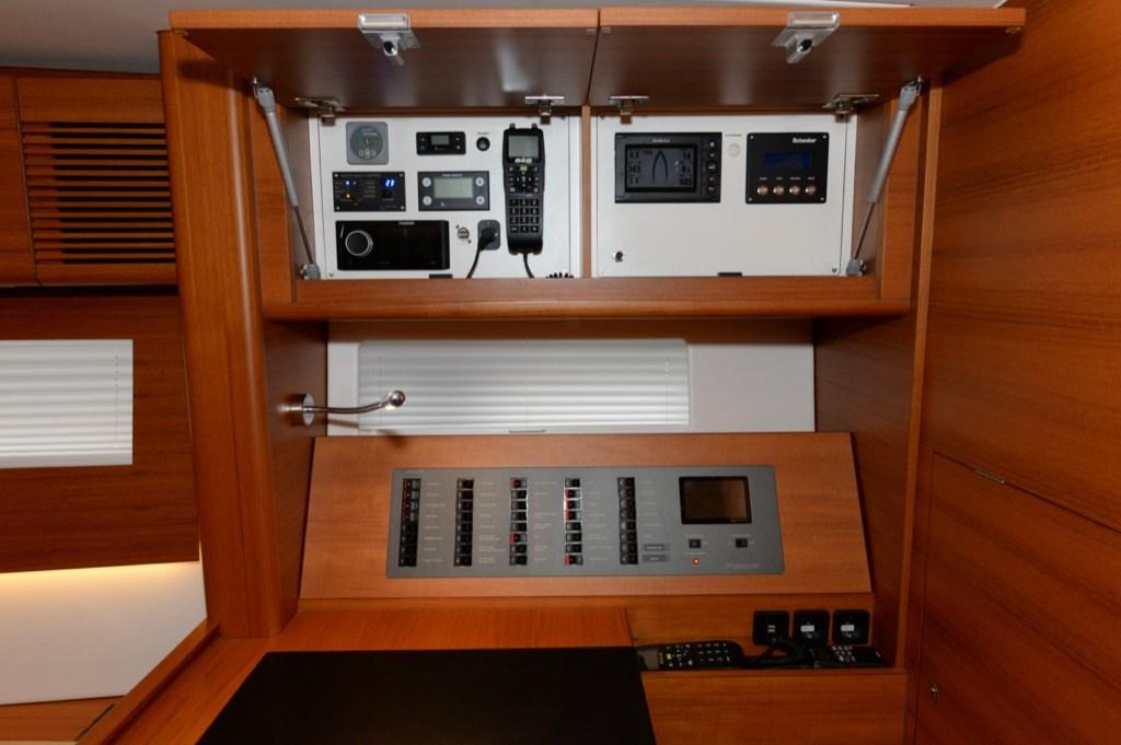 Équipement Gennaker, Enrouleur de foc (ELETTRICO SELDEN CON COMANDO IN CONSOLLES), Bôme à enrouleur (FURLER BOME CON COMANDI IN CONSOLLES), Etai de trinquette (AVVOLGITORE RECKMAN CON COMANDO IN CONSOLLES), Ridoir de pataras (CENTRALINA IDRAULICA HARKEN), barre d'écoute (ELETTRICO), halebas (IDRAULICO CENTRALINA HARKEN).