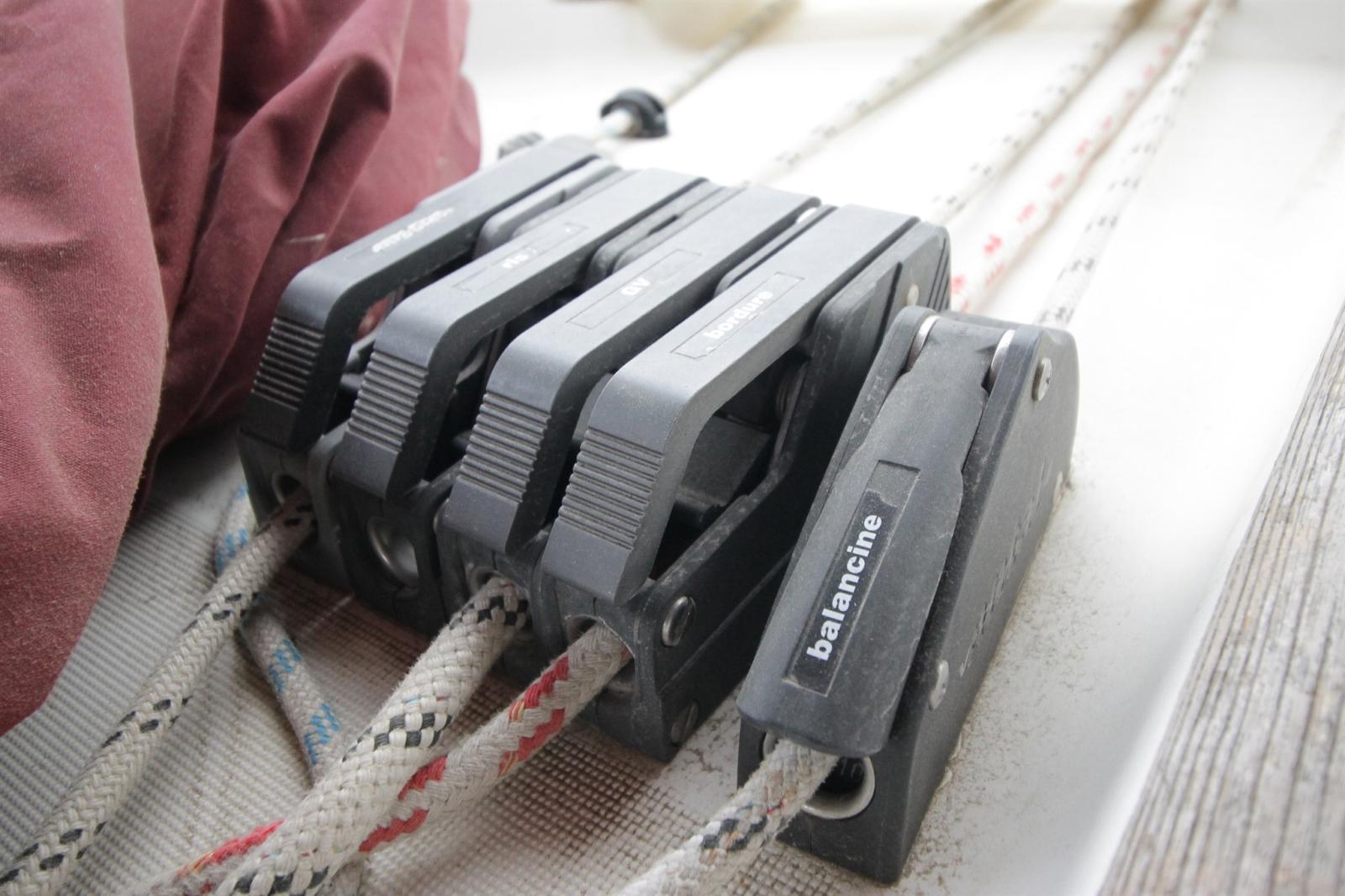 Accastillage de spi, Bout-dehors, Lazy Bag (de 2022), Lazy Jack, Etai de trinquette, Ridoir de pataras, halebas rigide, halebas.