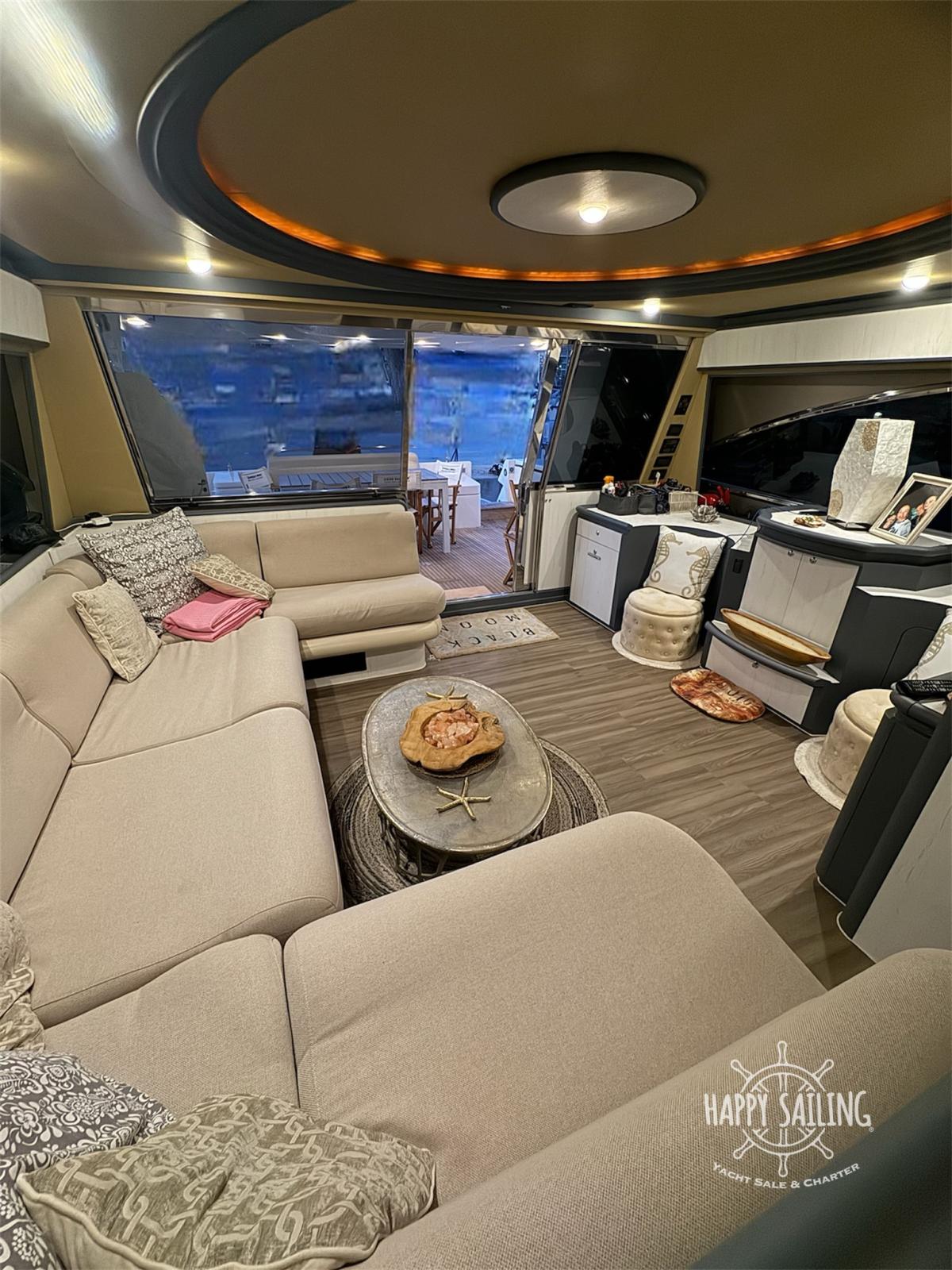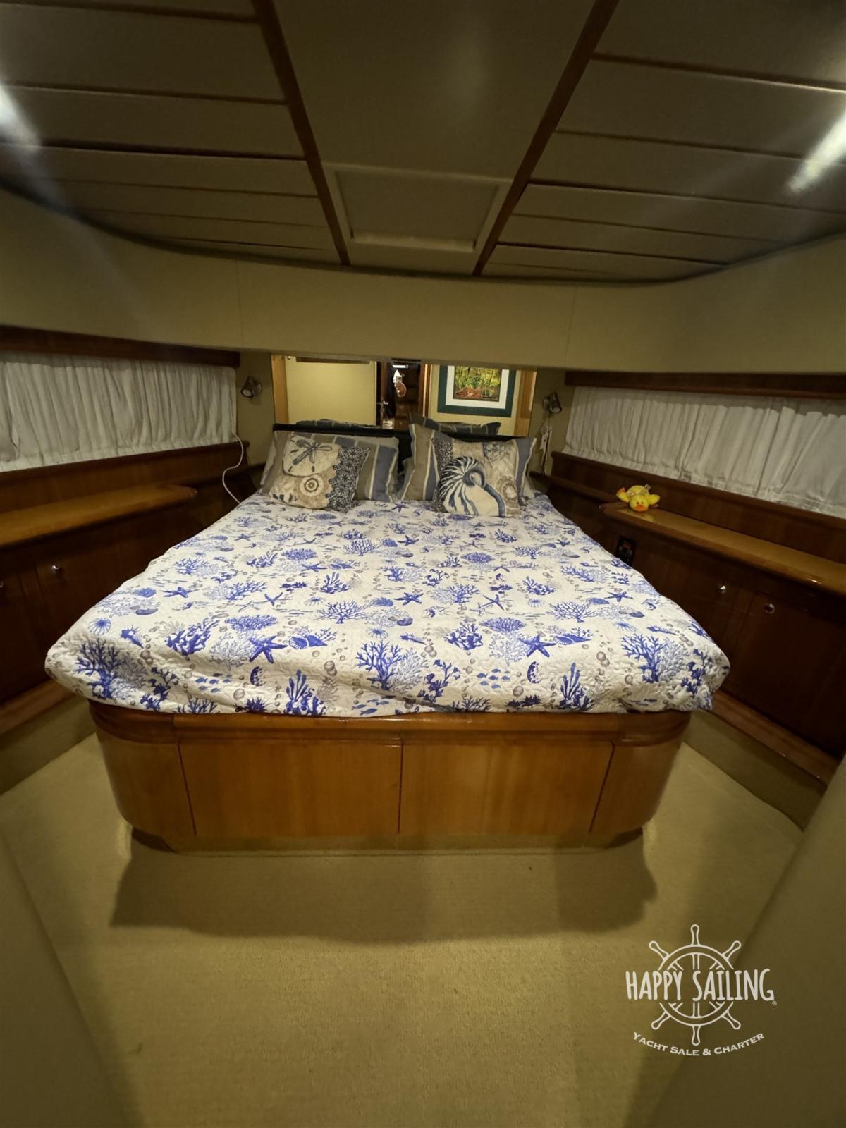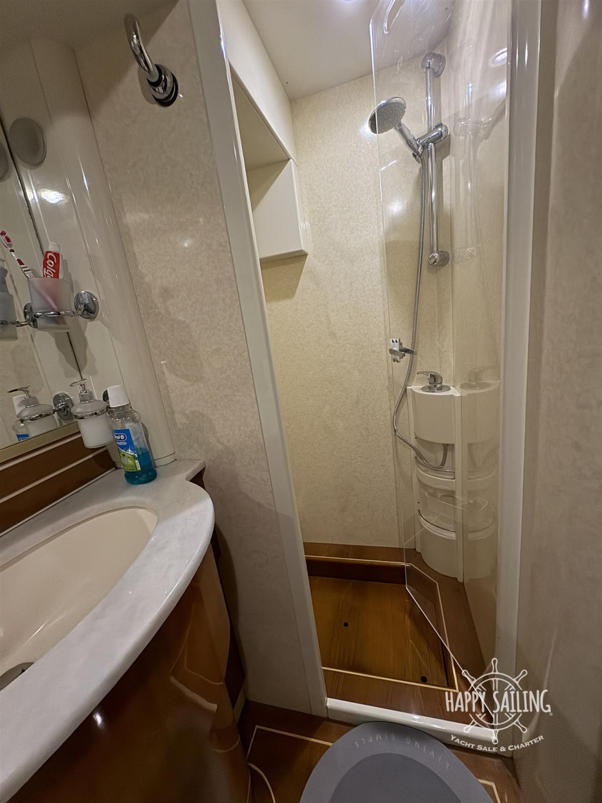 cabine principale au milieu du navire avec salle de bain privée, cabine VIP à l’avant avec salle de bain privée, 1 cabine d’invités avec deux lits indiens, 1 cabine d’invités avec lits superposés, une salle de bain pour les invités. Cabine d’équipage extérieure avec salle de bain privée.