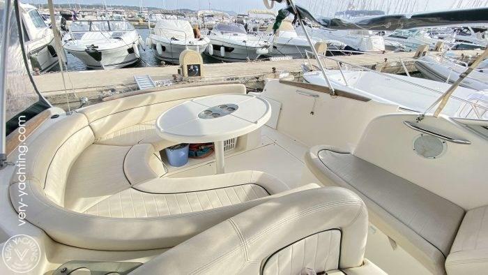 Alarme moteur, Ancre (Chaine 20m), Eau sous pression, 2 Batteries, Douche de cockpit, 2 Flaps électriques, Extincteur(s) fixe(s), Plateforme arrière (caillebotis en teck), Pompe de cale manuelle, Prise de quai, Guindeau électrique (avec télécommande), Echelle de bain, table de cockpit.