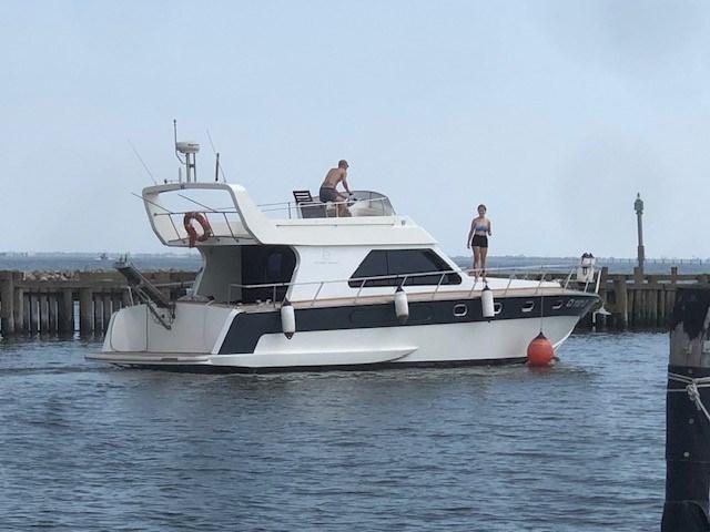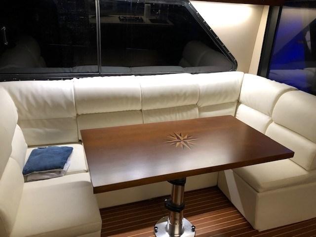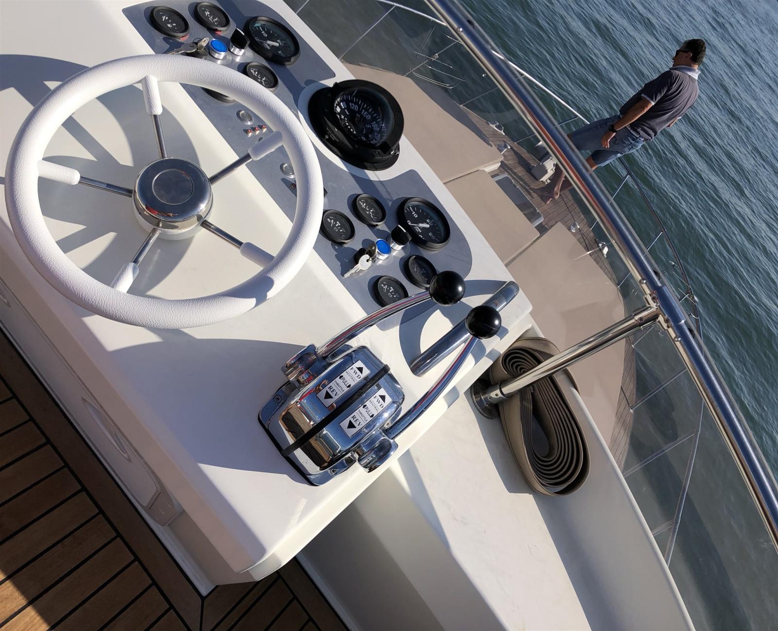 Alarme moteur, Eau sous pression, 5 Batteries, Passavant en teck, Douche de cockpit, Phare de poursuite, Flaps hydrauliques, Extincteur(s) fixe(s), Éclairage de courtoisie, Passerelle (Idraulica), Plateforme arrière, Pompe de cale automatique, Pont en teck, Cockpit en teck, Prise de quai, Connexion eau sous pression à quai, Rollbar, Guindeau électrique, Echelle de bain, table de cockpit, Table pliante de salon, Corne, Pont en teck.