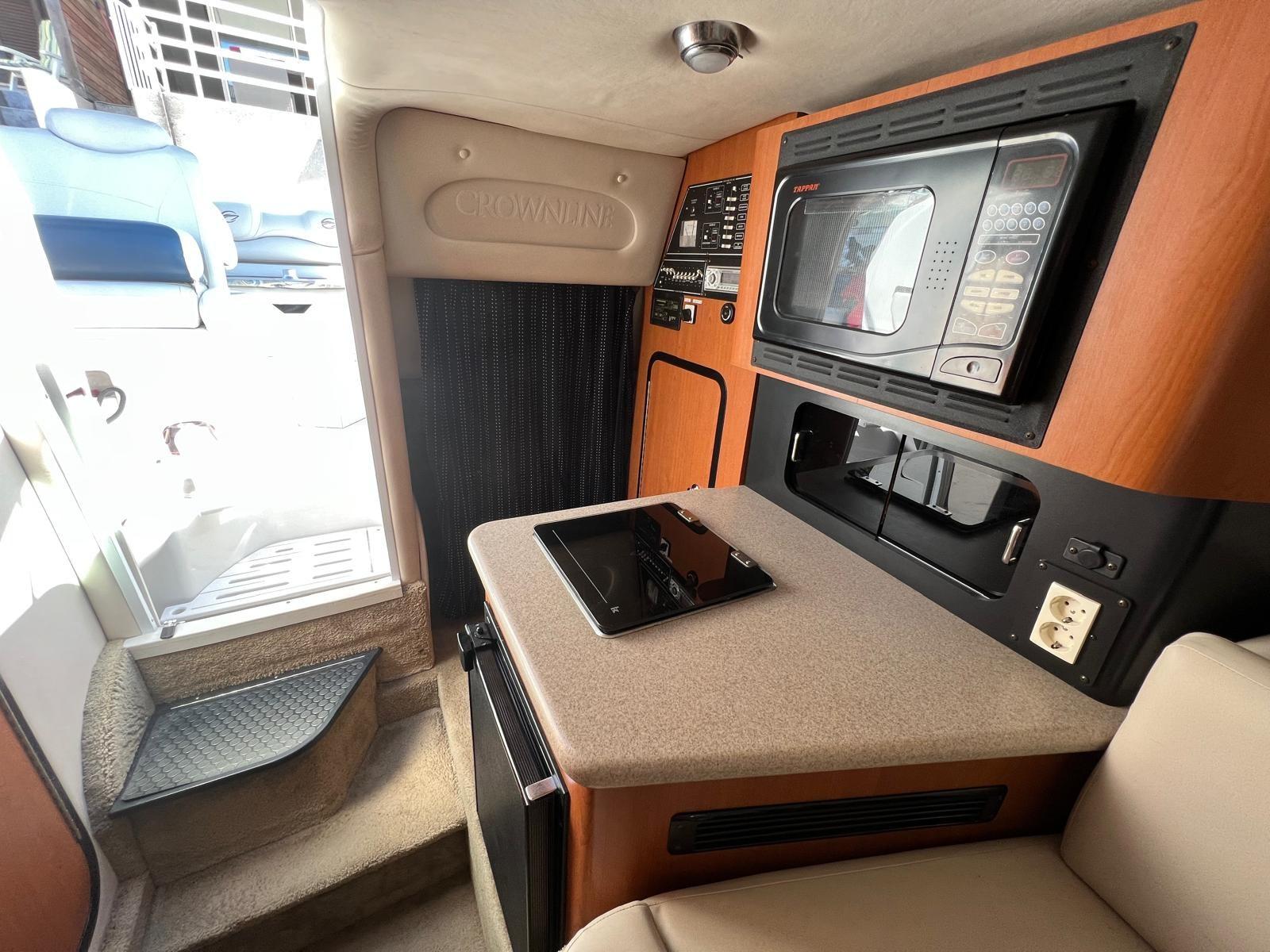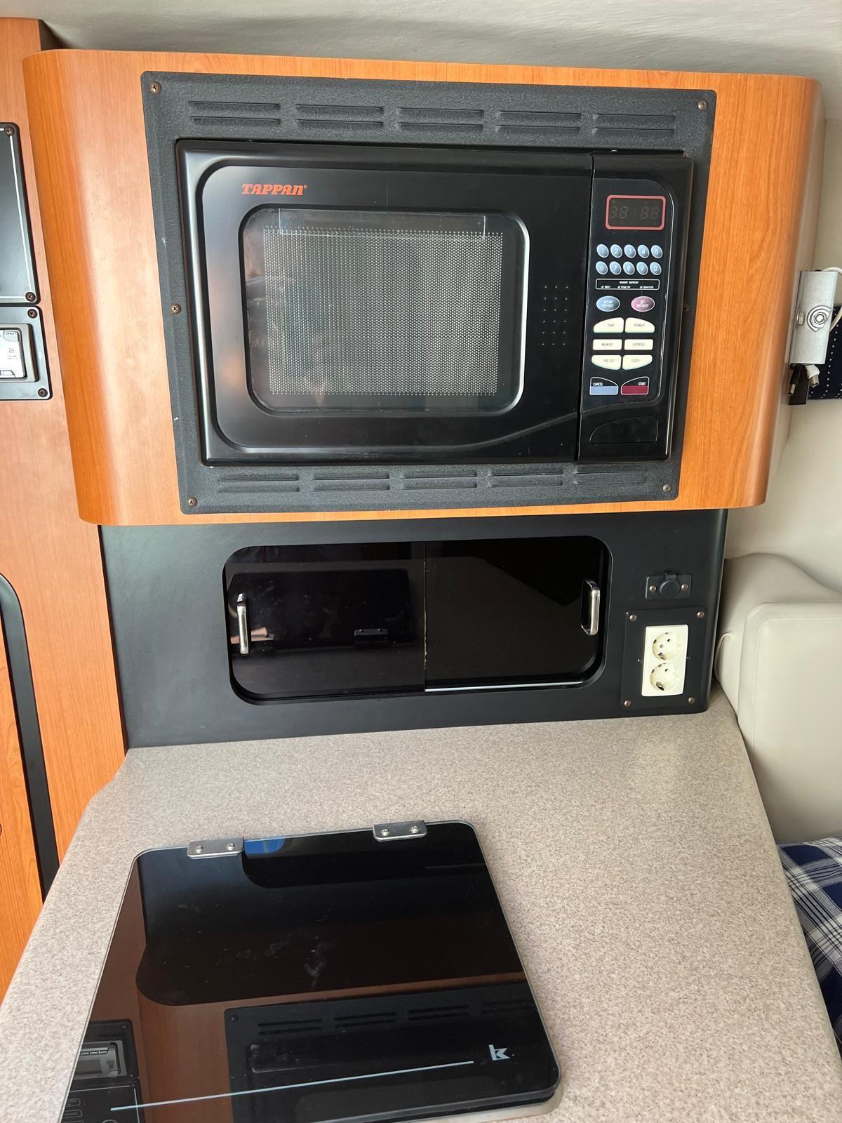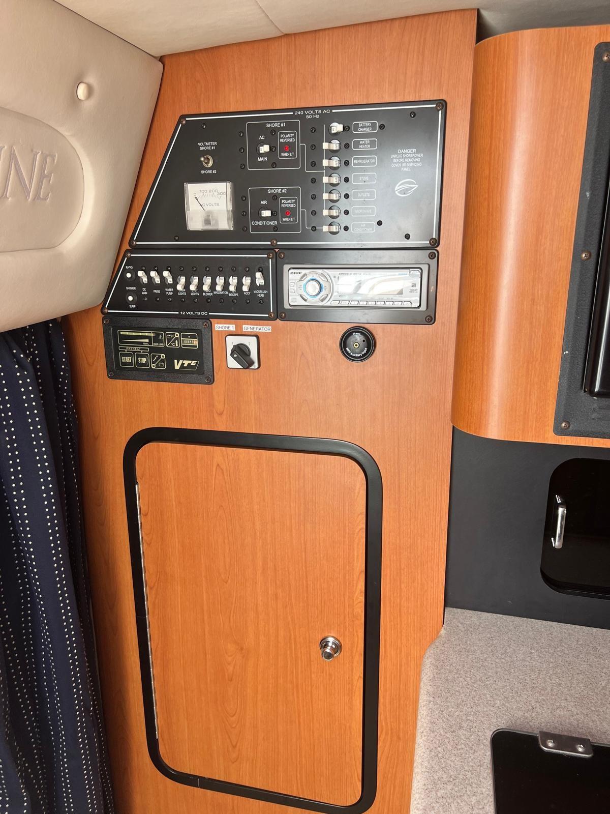 Alarme moteur, Alarme de pompe de cale, Ouverture du compartiment moteur électrique, Eau sous pression, Douche de cockpit, Flaps hydrauliques, Extincteur(s) fixe(s), Lavabo dans le cockpit, Éclairage de courtoisie, Spots sous-marins, Plateforme arrière, Pompe de cale automatique, Cockpit en teck (Flexi-tek), Prise de quai, Connexion eau sous pression à quai, Rollbar, Guindeau électrique, Echelle de bain, table de cockpit, Corne.