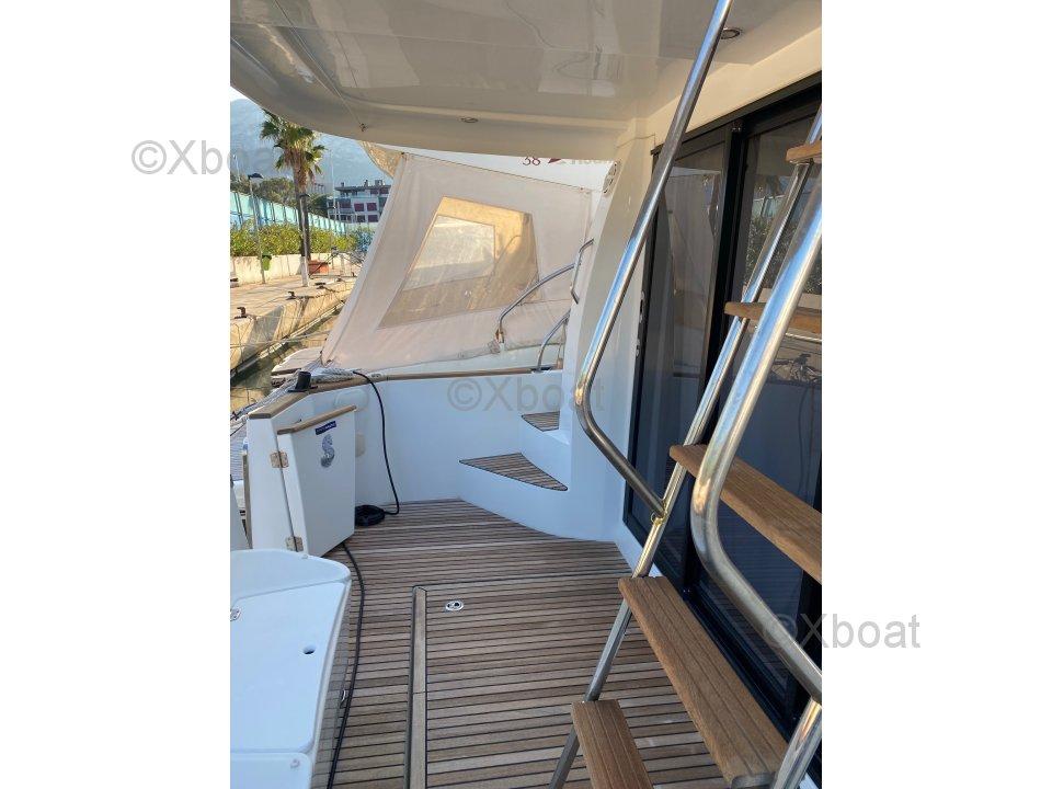 Le flybridge est sûr et extrêmement spacieux, comprenant une banquette pour quatre personnes, un siège conducteur et un grand bain de soleil, le tout avec une vue exceptionnelle. Le bateau est extrêmement bien équipé et dispose de toutes les options disponibles au moment de son achat en mars 2016 :