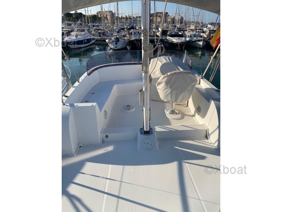 Ce modèle offre un hébergement confortable pour 4 personnes dans 2 cabines avec couchettes doubles et un canapé convertible en couchette double dans le salon. Basé sur une coque à semi-déplacement, il permet de naviguer confortablement à des vitesses allant jusqu'à 20 nœuds.
