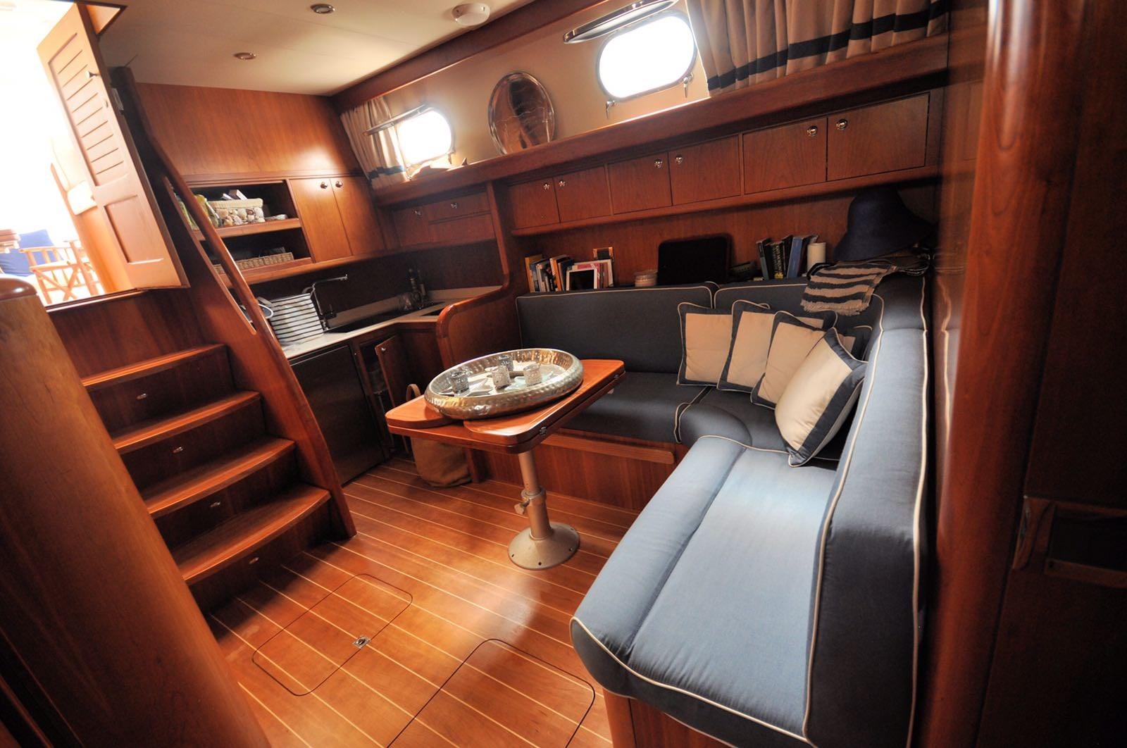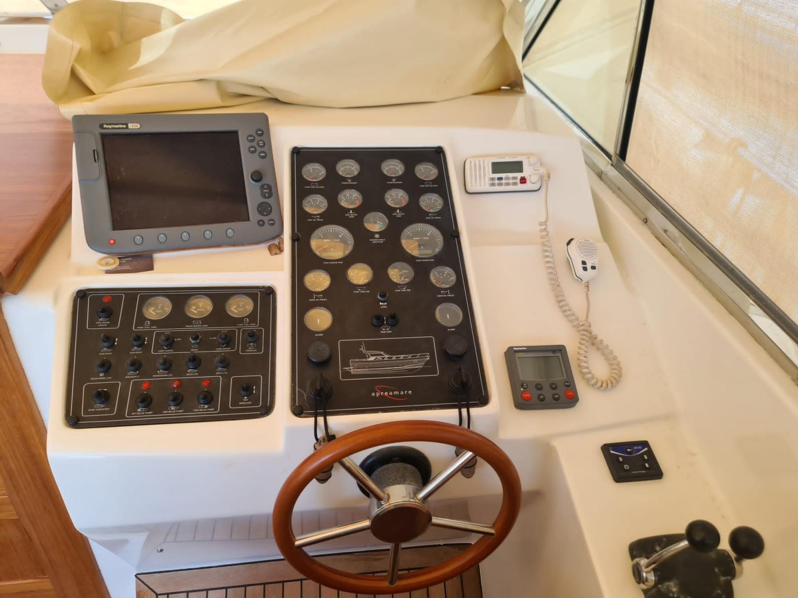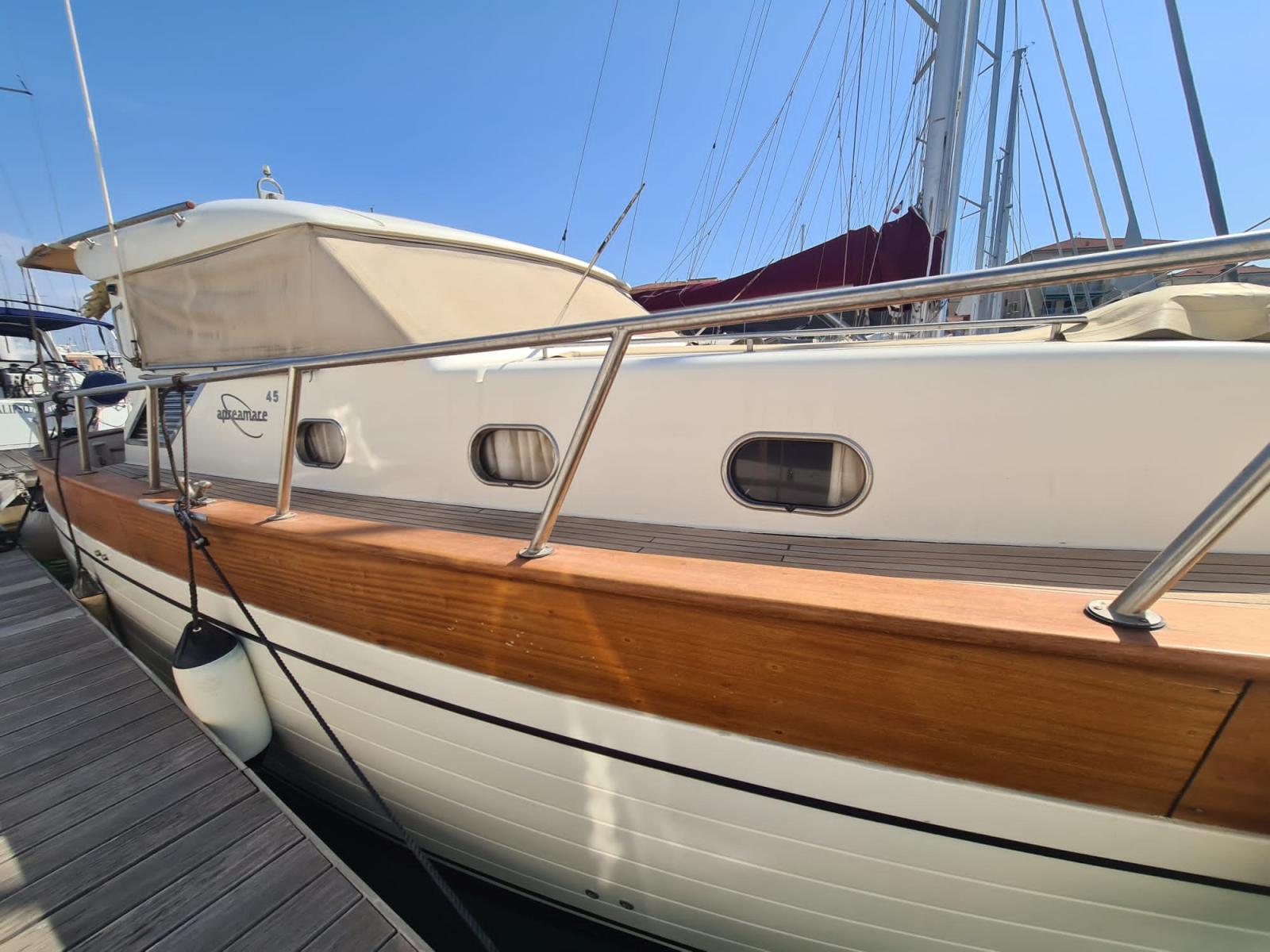 Aprea 45 Comfort 45 de 2006 immatriculé en 2007 avec deux Volvo Penta 500hp avec moteurs révisés en 2016. coque à zéro en 2021. Cabine principale avant avec salle de bains et cabine invités avec deux lits à l’étage avec salle de bains, coin repas avec cuisine équipée. Générateur 3,5 kw .