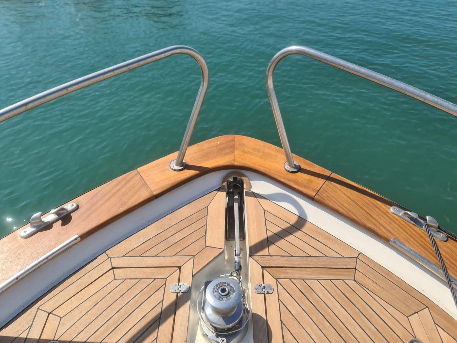 Alarme moteur, Eau sous pression, Douche de cockpit, Passerelle, Plateforme arrière, Cockpit en teck, Prise de quai, Rollbar, Guindeau électrique, Echelle de bain, table de cockpit.