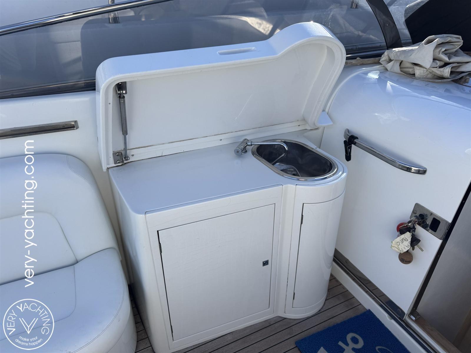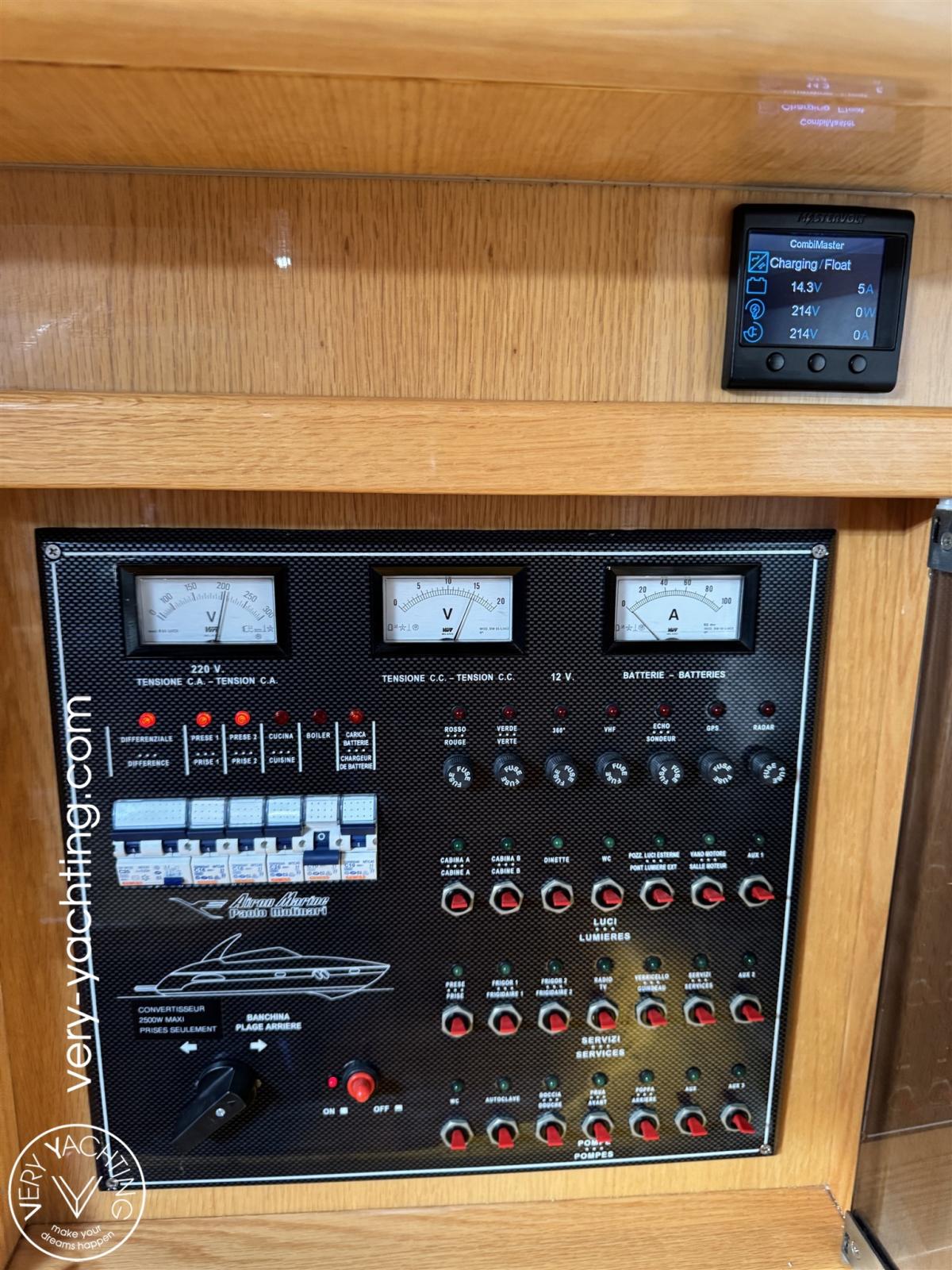 Alarme moteur, Eau sous pression, 4 Batteries (2x moteur/ 2x Service), Douche de cockpit, Lavabo dans le cockpit, Plateforme arrière, Pompe de cale automatique, Onduleur, Rollbar, Guindeau électrique (Quick), Echelle de bain.
