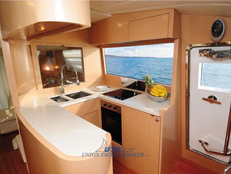 Ce modèle allie le goût des amateurs de débordement et des admirateurs du flybridge, la coque possède une coupe décisive, sinueuse et envoûtante. Le design est élégant et innovant, les moteurs agressifs et performants.