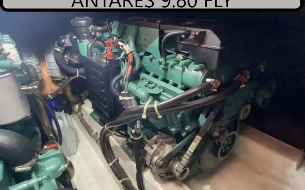 Avec ses 2 moteurs Volvo Penta diesel de 225 CV chacun (année 2007, comme le bateau), l’Antares 980 Fly vous promet des balades maritimes aussi dynamiques qu’économiques.