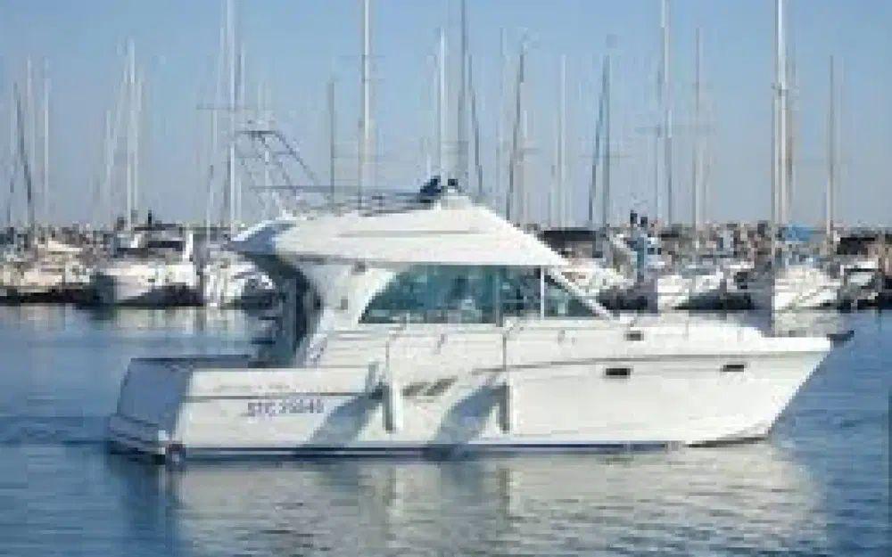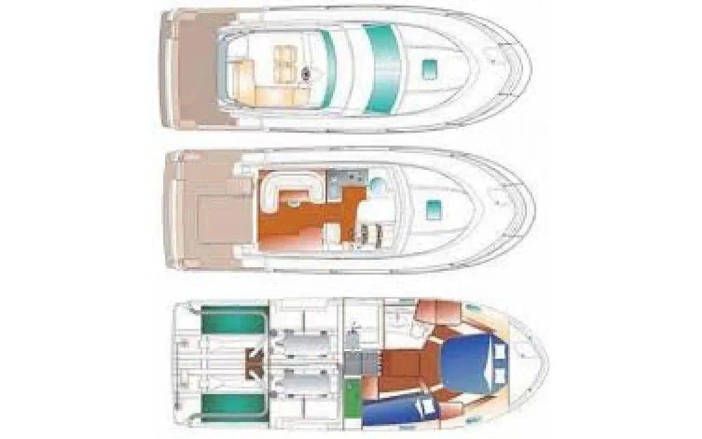 Côté sécurité, tout y est : radeau de survie, armement complet et guindeau électrique. Pour les mordus de pêche comme de farniente, vous trouverez : porte-cannes, douchette de cockpit et pont en teck pour un look chic et une solidité à toute épreuve. Pour la navigation ? GPS, VHF, sondeur, pilote automatique, antenne TV… et même un portique arrière pour les grandes traversées et les escales prolongées.