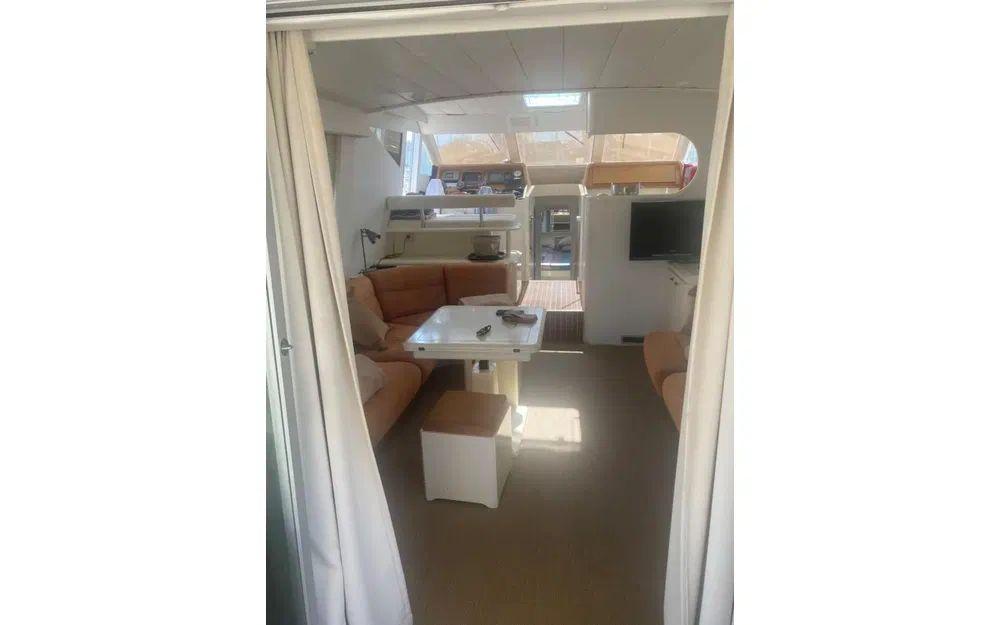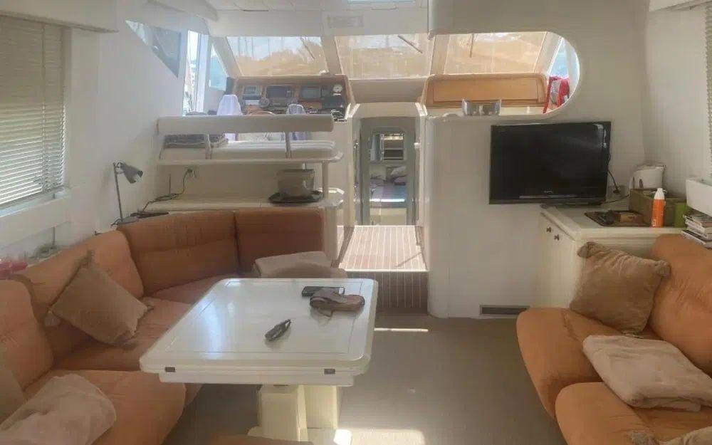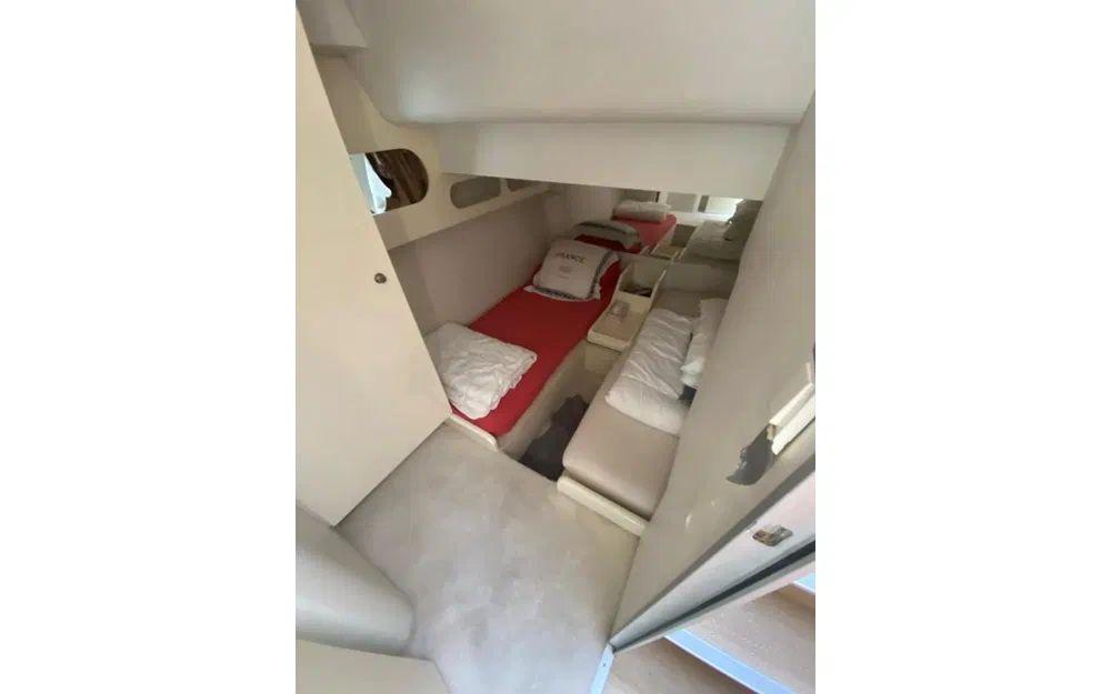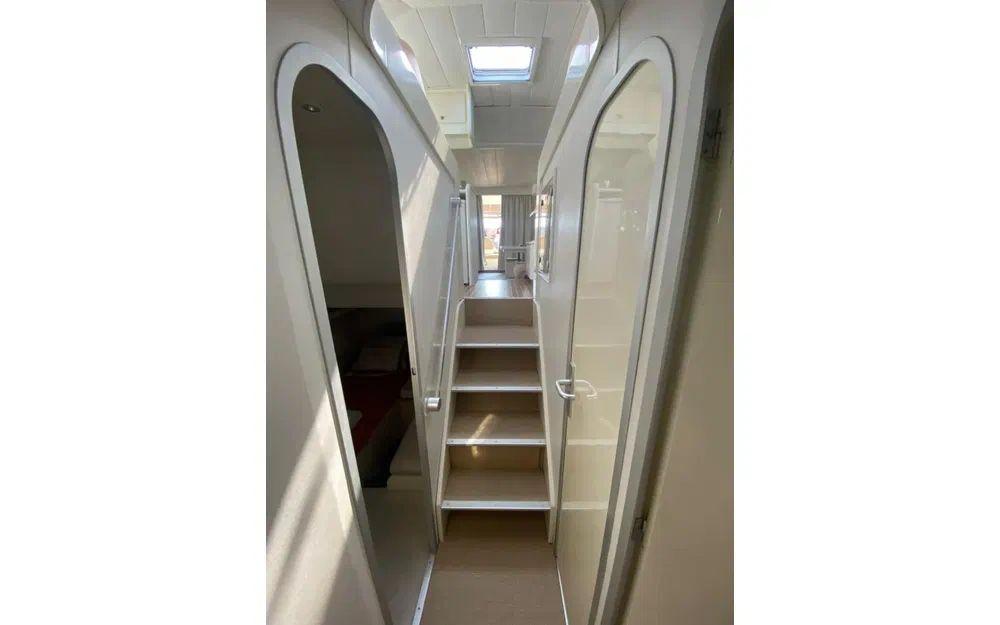 Avec ses 14,55 mètres de longueur et 4,18 mètres de largeur, il offre un espace à vivre impressionnant pour accueillir jusqu’à 10 passagers, dormir dans 4 cabines confortables et profiter d’un total de 8 couchages. Ambiance grand large garantie, de jour comme de nuit !