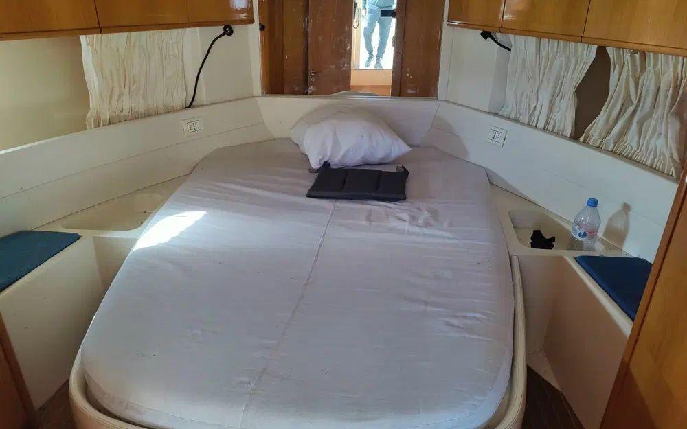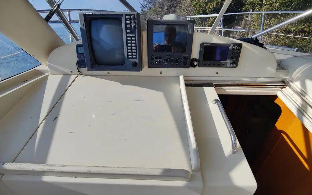 Côté mécanique, on tient la grande forme avec 2 moteurs Caterpillar diesel de 330 cv chacun, affichant 1 390 heures chrono au compteur (1998), de quoi partir en croisière l’esprit tranquille et l’oreille attentive au doux son du diesel.
