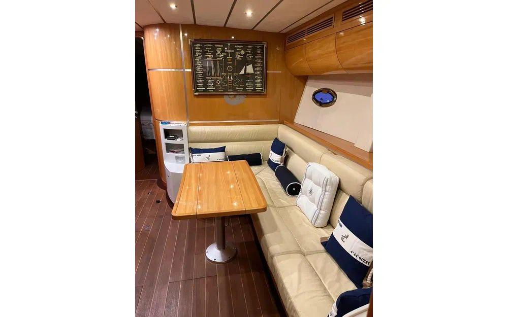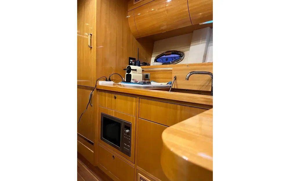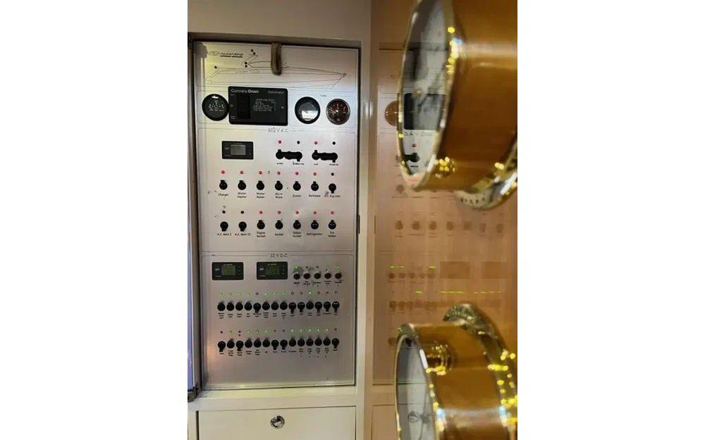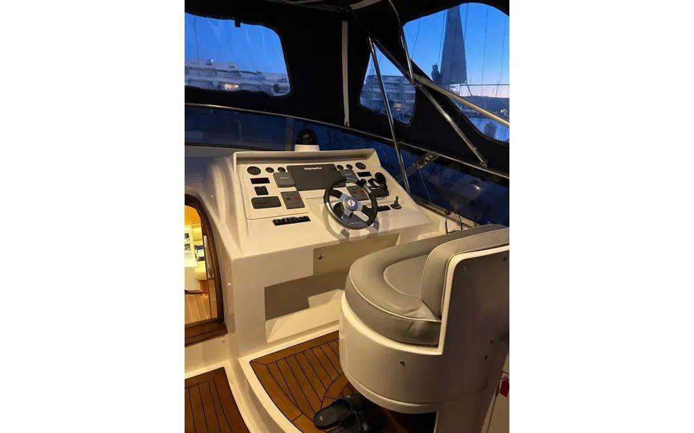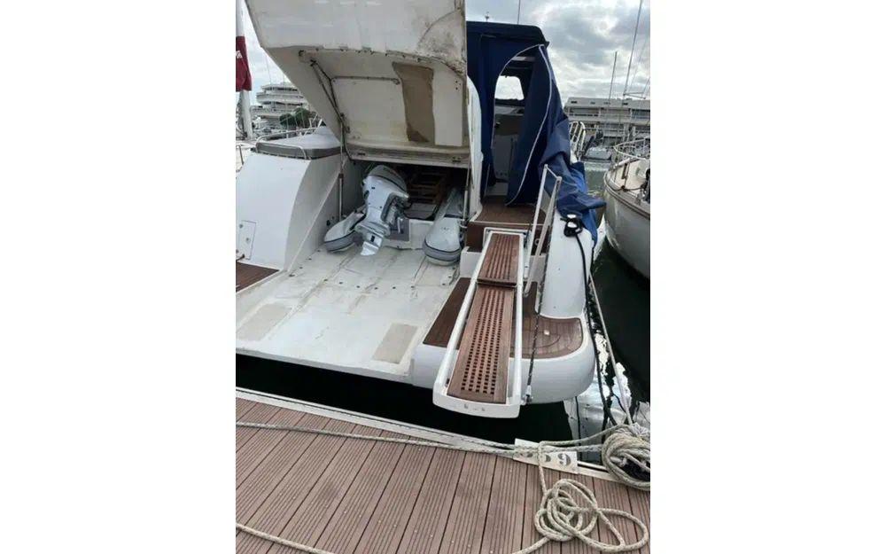 Sous le capot, on retrouve une motorisation double Yanmar Diesel de 2 x 440 CV (1700 heures), prête à vous emmener loin, longtemps, et sans sourciller. Nul besoin d'être mécano : les moteurs sont fiables et économiques. Niveau équipements, ce yacht a vraiment tout pour plaire : climatisation, chauffage, générateur, plancha, plateformes de bain en teck, propulseur d’étrave… Il ne vous manque que la glacière pour les apéros ! Guindeau électrique, GPS, pilote automatique, VHF, radar et toute l’électronique qu’il vous faut sont aussi de la partie pour naviguer sereinement. Pour les plus exigeants, des équipements dignes d’un paquebot : taud d’hivernage, bimini top, moustiquaires, rideaux, coffre annexe, placards à gogo, sans oublier le confort à bord (TV, four, micro-ondes, grands bains de soleil avant et arrière, etc.).