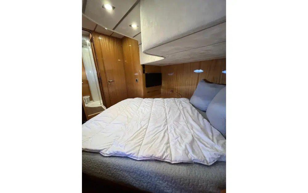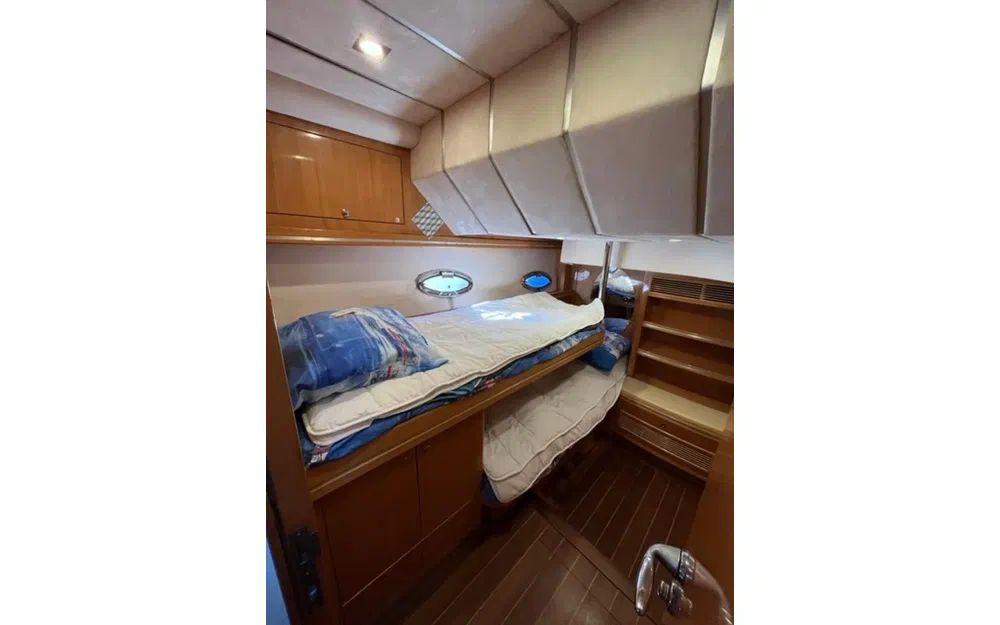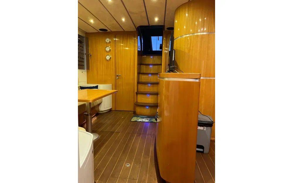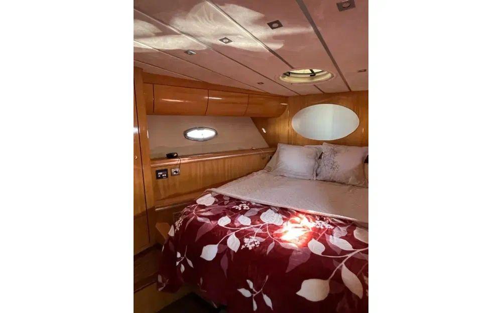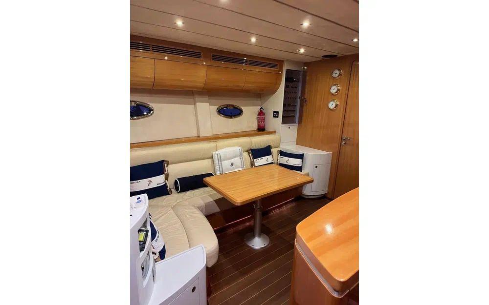 Sous le capot, on retrouve une motorisation double Yanmar Diesel de 2 x 440 CV (1700 heures), prête à vous emmener loin, longtemps, et sans sourciller. Nul besoin d'être mécano : les moteurs sont fiables et économiques. Niveau équipements, ce yacht a vraiment tout pour plaire : climatisation, chauffage, générateur, plancha, plateformes de bain en teck, propulseur d’étrave… Il ne vous manque que la glacière pour les apéros ! Guindeau électrique, GPS, pilote automatique, VHF, radar et toute l’électronique qu’il vous faut sont aussi de la partie pour naviguer sereinement. Pour les plus exigeants, des équipements dignes d’un paquebot : taud d’hivernage, bimini top, moustiquaires, rideaux, coffre annexe, placards à gogo, sans oublier le confort à bord (TV, four, micro-ondes, grands bains de soleil avant et arrière, etc.).