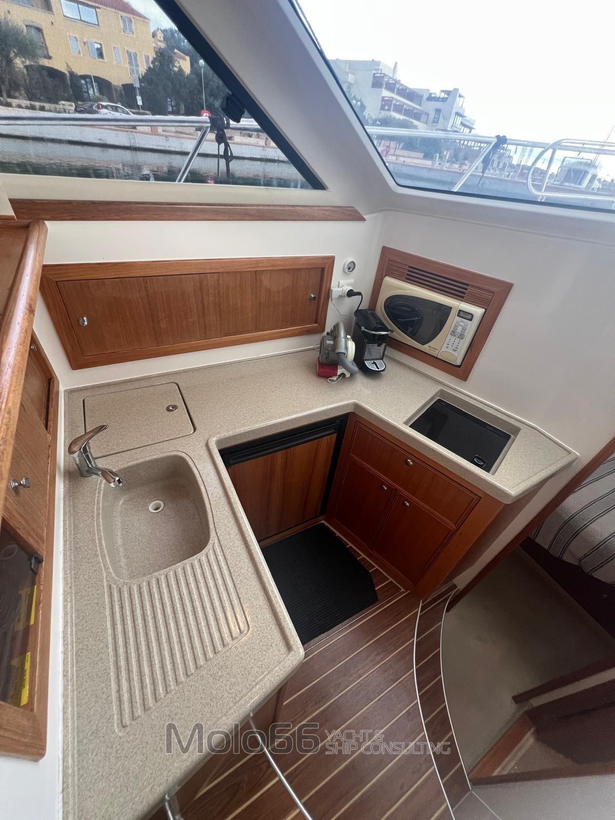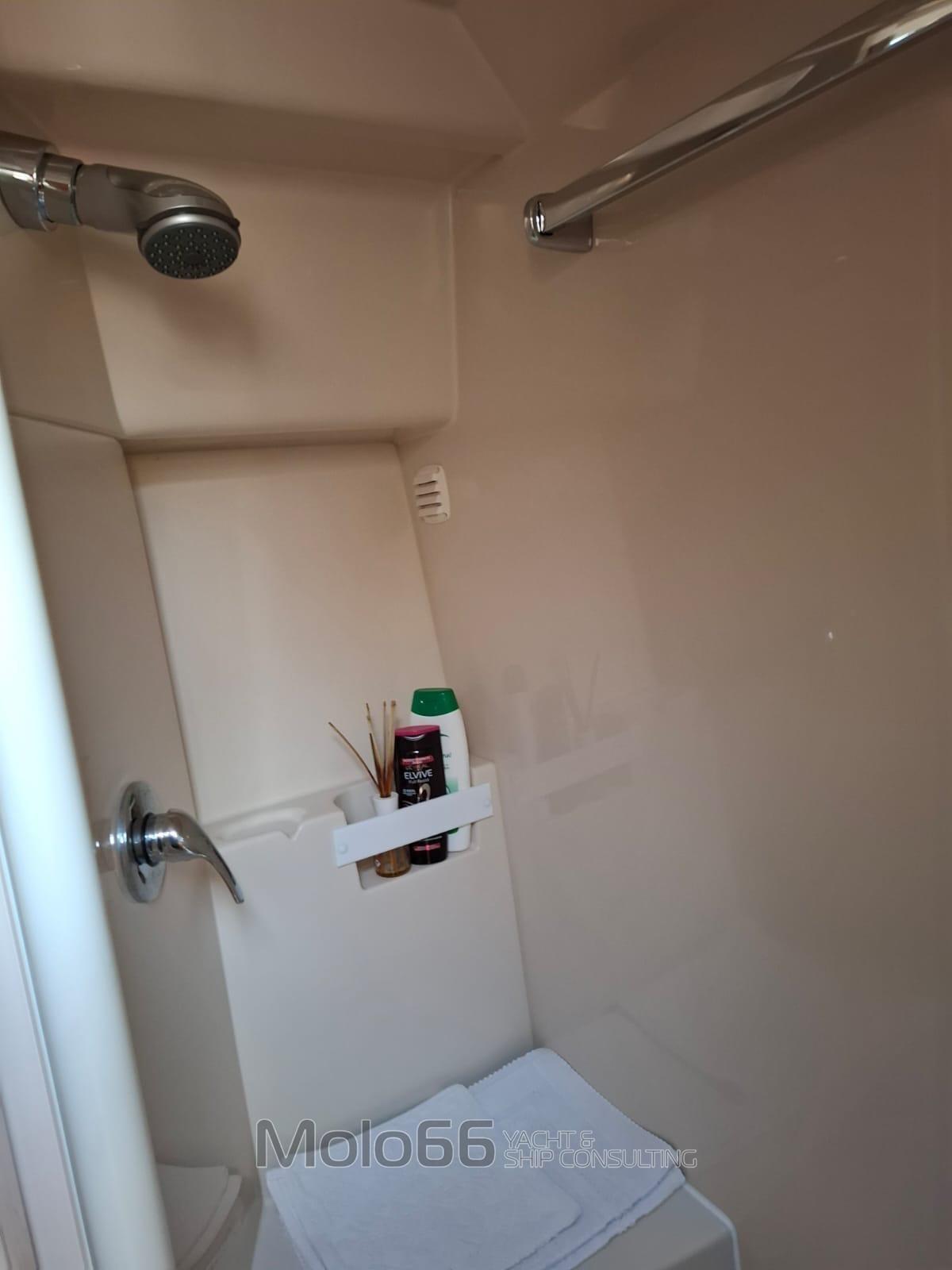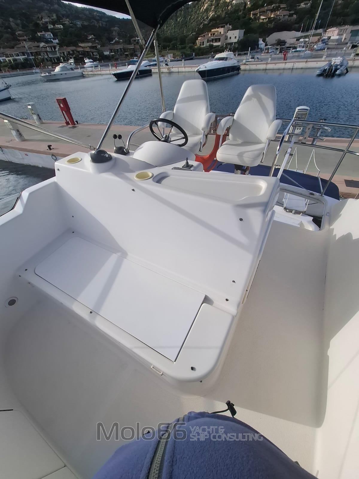 Alarme gaz, Alarme moteur, Alarme de pompe de cale, Eau sous pression, Douche de cockpit, Double barre à roue, Phares fixes arrière, Phare de poursuite, Flaps électriques, Extincteur(s) fixe(s), Indicateurs de flaps, Lavage de chaine, Lavabo dans le cockpit, Éclairage de courtoisie, Passerelle, Plateforme arrière, Porte latérale, Prise de quai, Guindeau électrique, Echelle de bain, Table pliante de salon, Corne, Winch électrique avant.