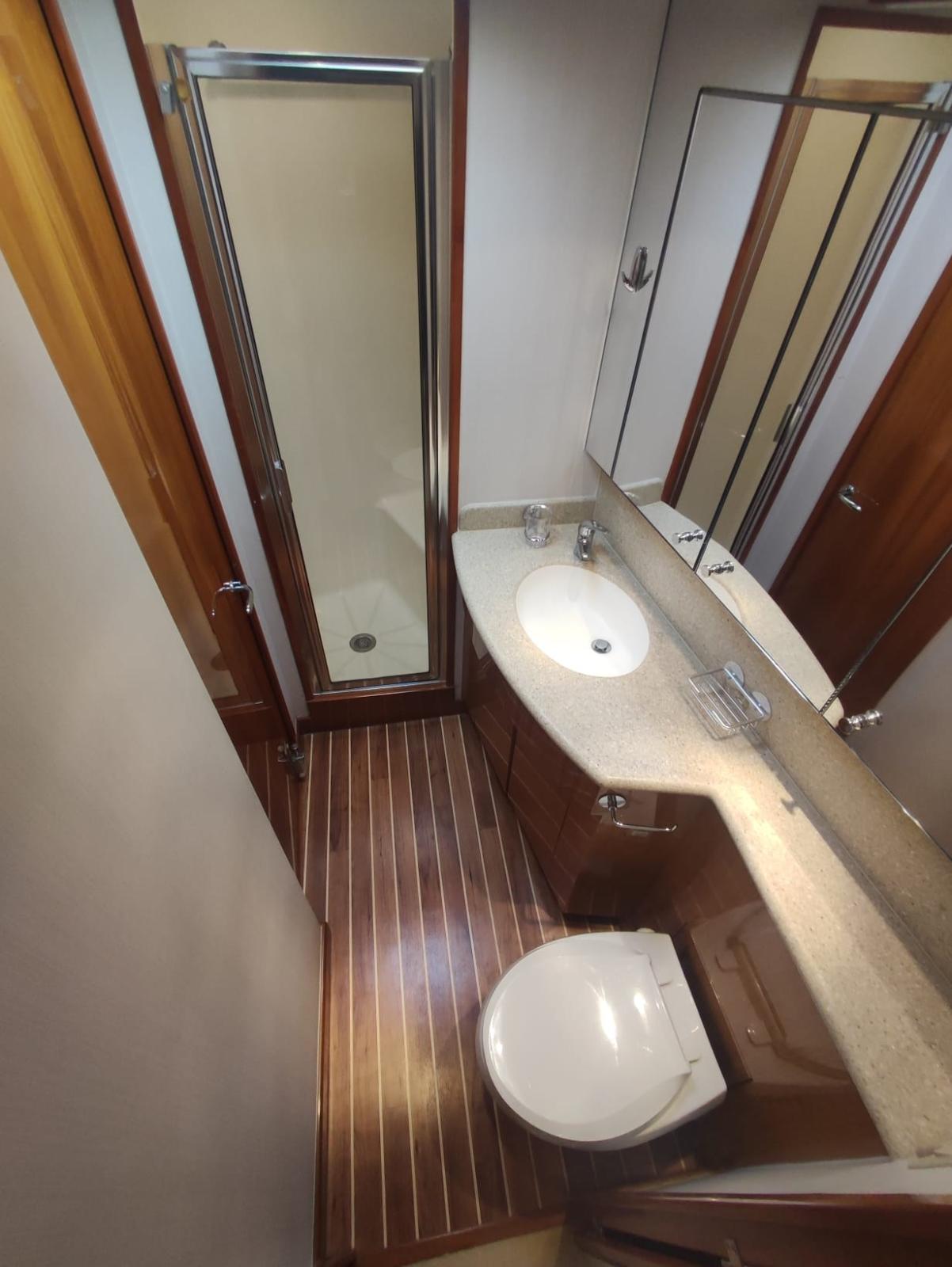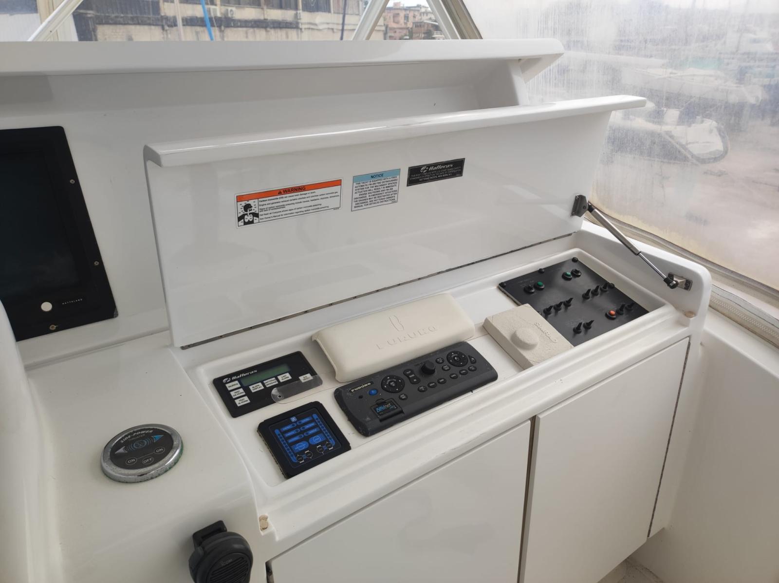 Eau sous pression, Douche de cockpit, Double barre à roue, Phare de poursuite, Flaps hydrauliques (N°2), Bossoirs, Passerelle, Plateforme arrière, Pompe de cale automatique, Onduleur, Guindeau électrique, Echelle de bain.