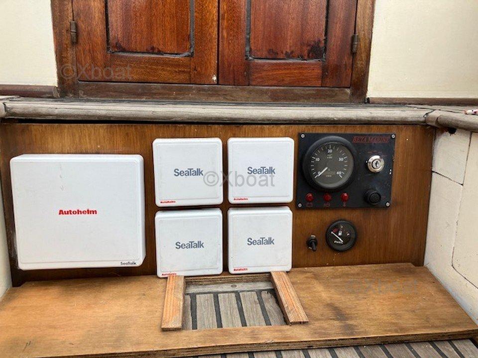 Refit du moteur, voiles neuves, électricité refaite, remis à l'eau en Juillet 2024 après un chantier de restauration de 3 ans.