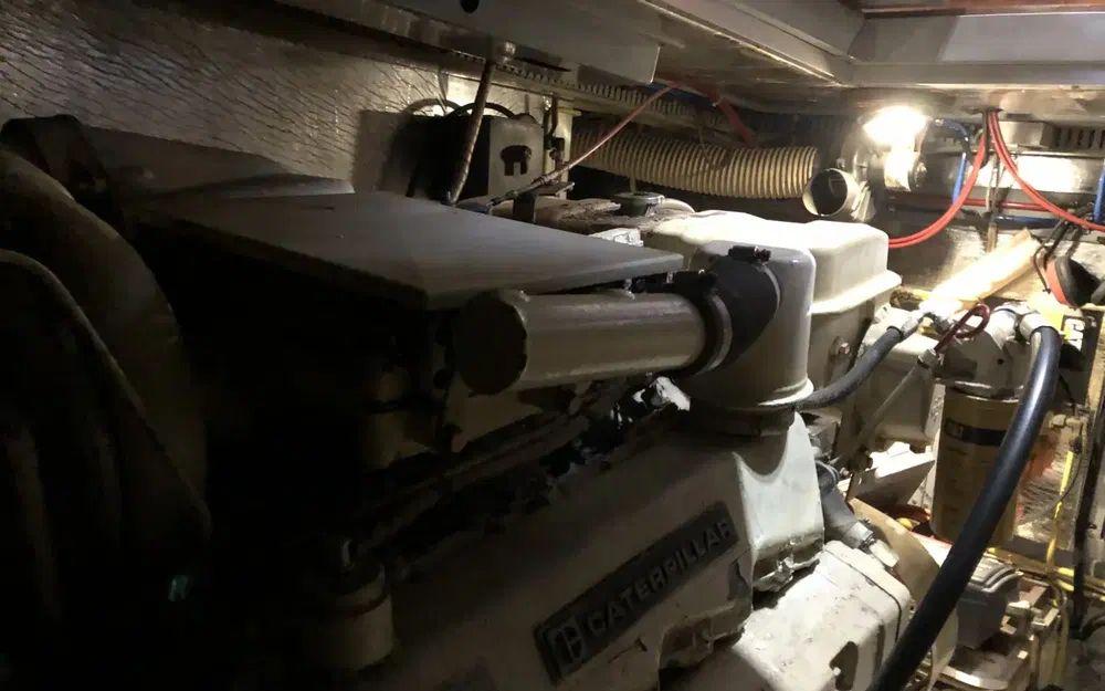 Côté moteur, ce bateau est propulsé par deux moteurs Caterpillar diesel délivrant chacun 375 chevaux, totalisant 1450 heures d'utilisation, garantissant ainsi des performances fiables et puissantes sur les flots.