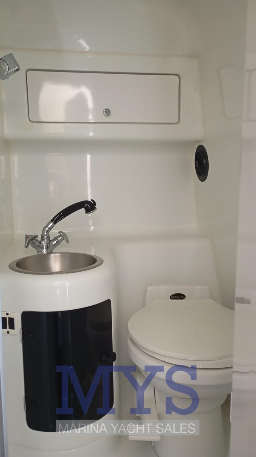 1 Salle de bain complète avec lavabo, douche et WC marins électriques
