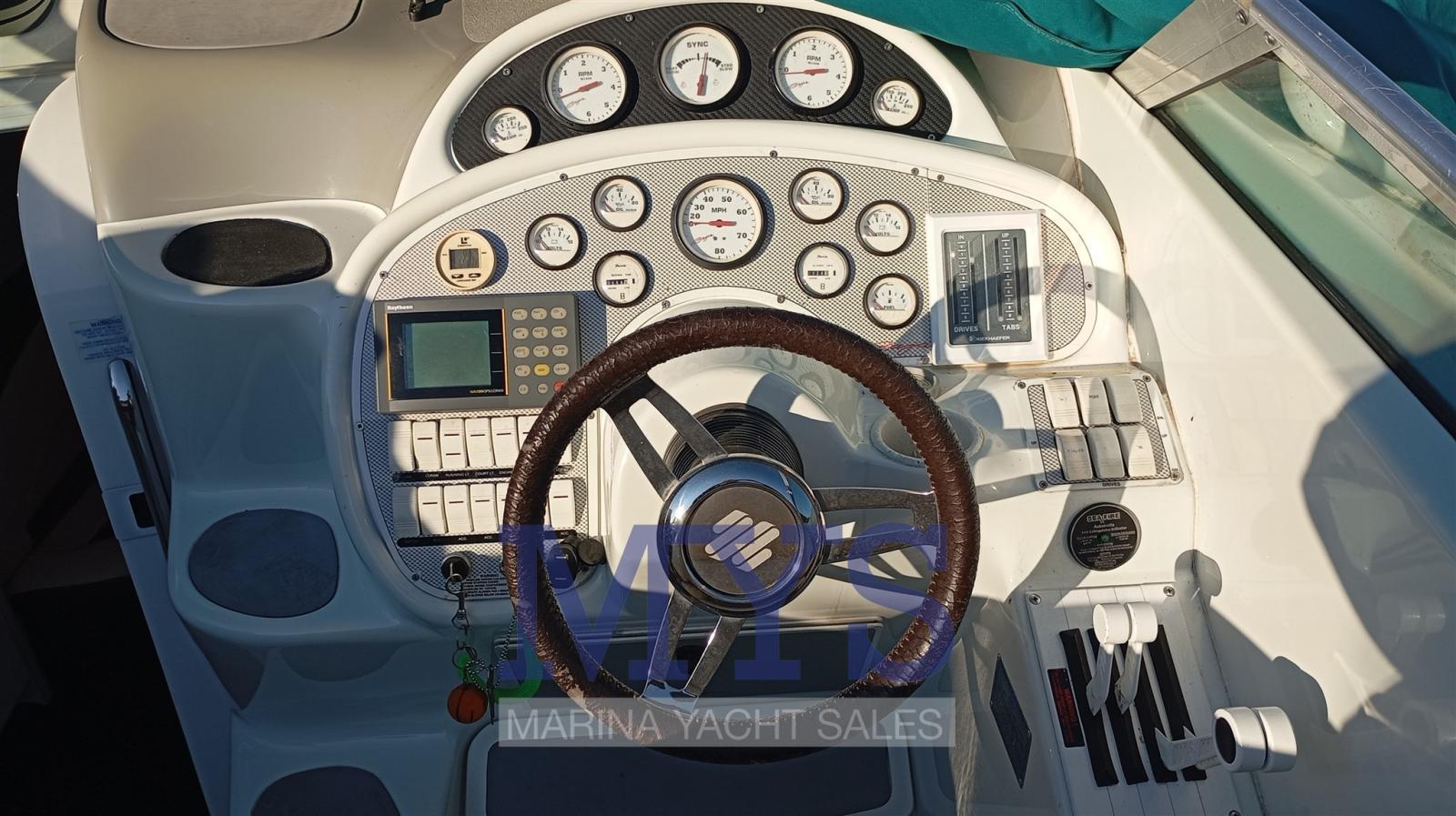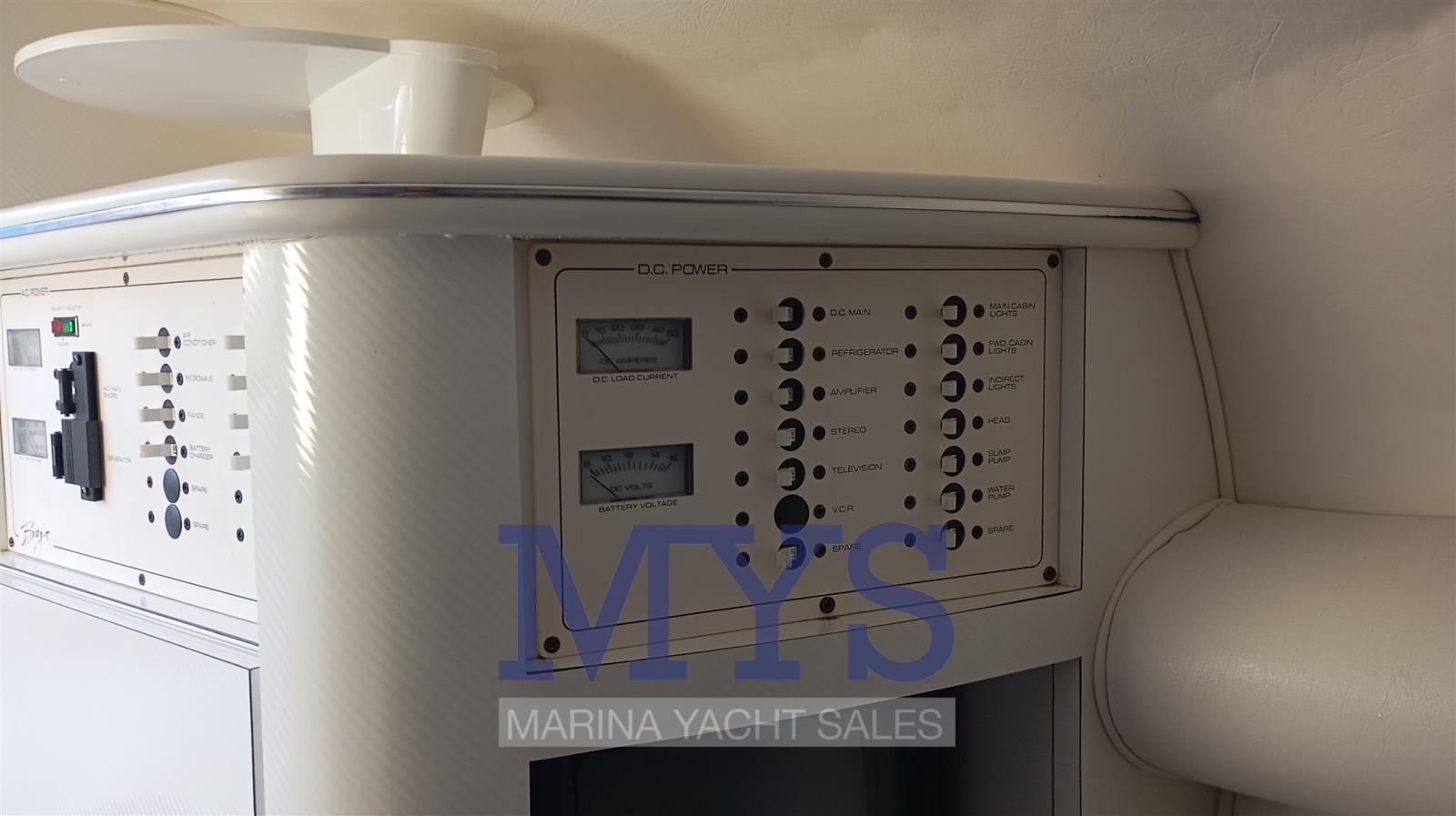 Alarme moteur, Eau sous pression, Douche de cockpit, Flaps hydrauliques, Indicateurs de flaps, Lavabo dans le cockpit, Éclairage de courtoisie, Pompe de cale automatique, Prise de quai, Guindeau électrique, Echelle de bain, table de cockpit, Corne.