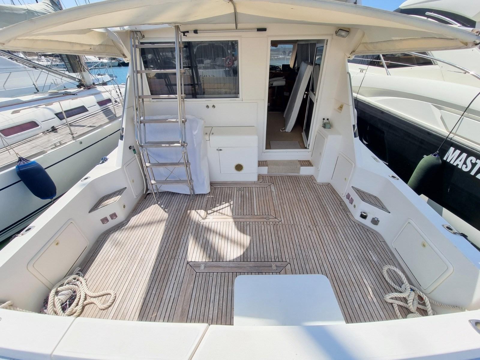 Alarme gaz, Alarme moteur, Alarme de pompe de cale, Eau sous pression, 4 Batteries (nuove Gennaio 2023), Douche de cockpit, Flaps hydrauliques, Extincteur(s) fixe(s), Indicateurs de flaps, Lavage de chaine, Passerelle, Plateforme arrière, Pompe de cale automatique, Porte latérale, Cockpit en teck, Prise de quai, Connexion eau sous pression à quai, Guindeau électrique, Echelle de bain, Corne.
