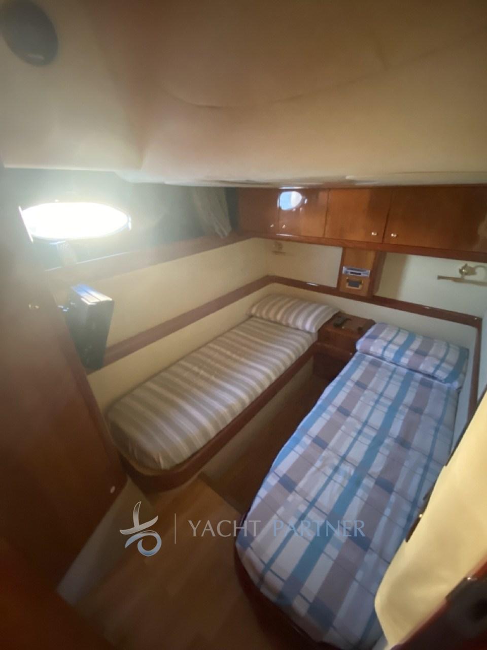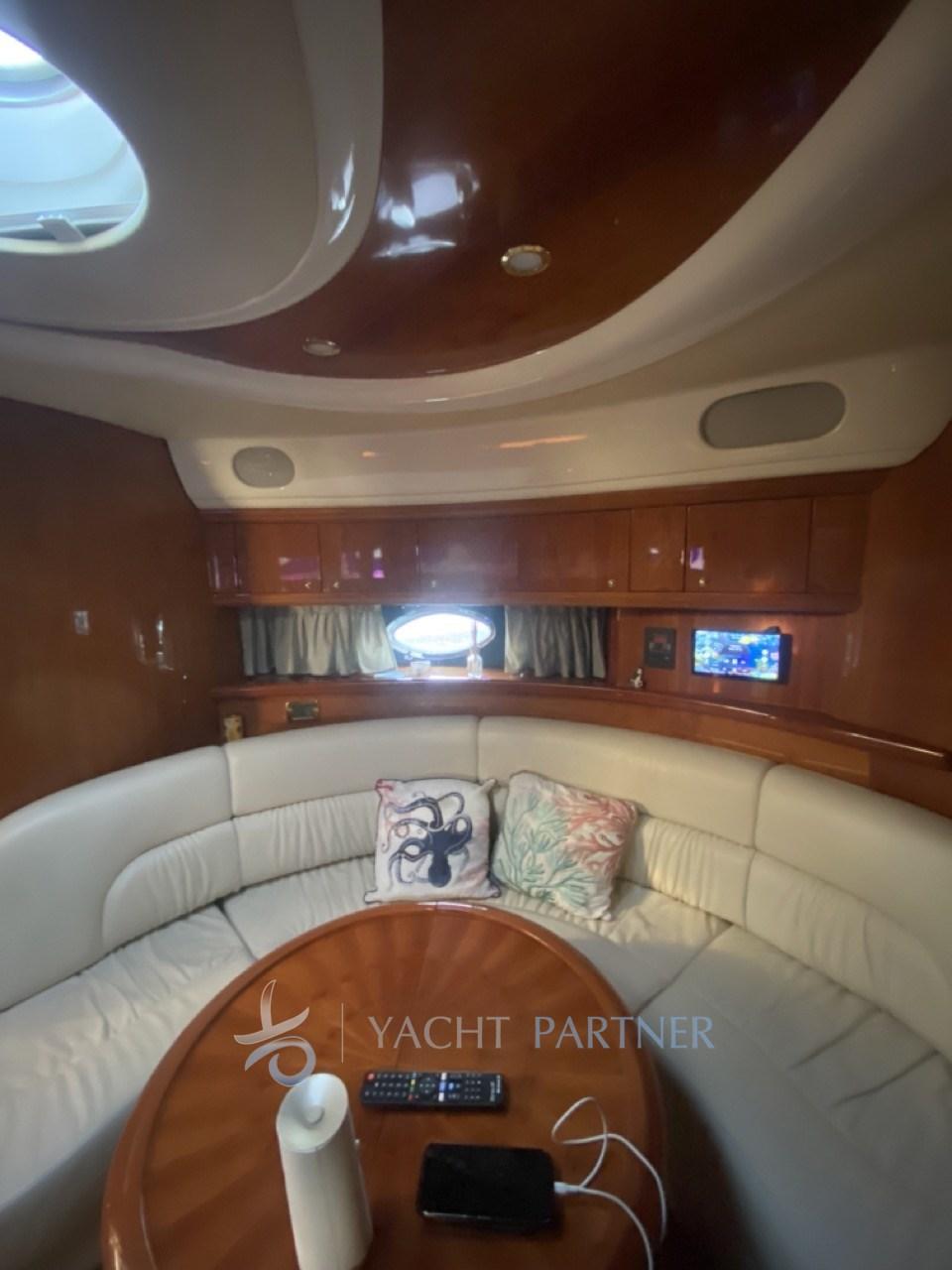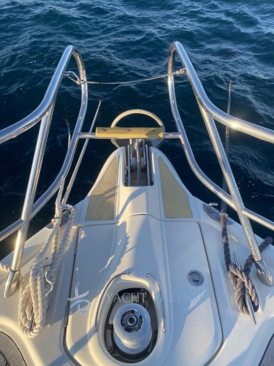 Alarme moteur, Alarme de pompe de cale, Eau sous pression, 5 Batteries (N.2 Motore 220ah (2022) N.2 Servizi 220ah (2023) N.1 Generatore 80ah (2023)), Douche de cockpit, Phare de poursuite, Flaps hydrauliques, Garage à annexe, Extincteur(s) fixe(s), Éclairage de courtoisie, Spots sous-marins, Passerelle (Besenzoni), Plateforme arrière (2022), Pompe de cale automatique, Cockpit en teck, Prise de quai, Connexion eau sous pression à quai, Guindeau électrique, Echelle de bain, table de cockpit.