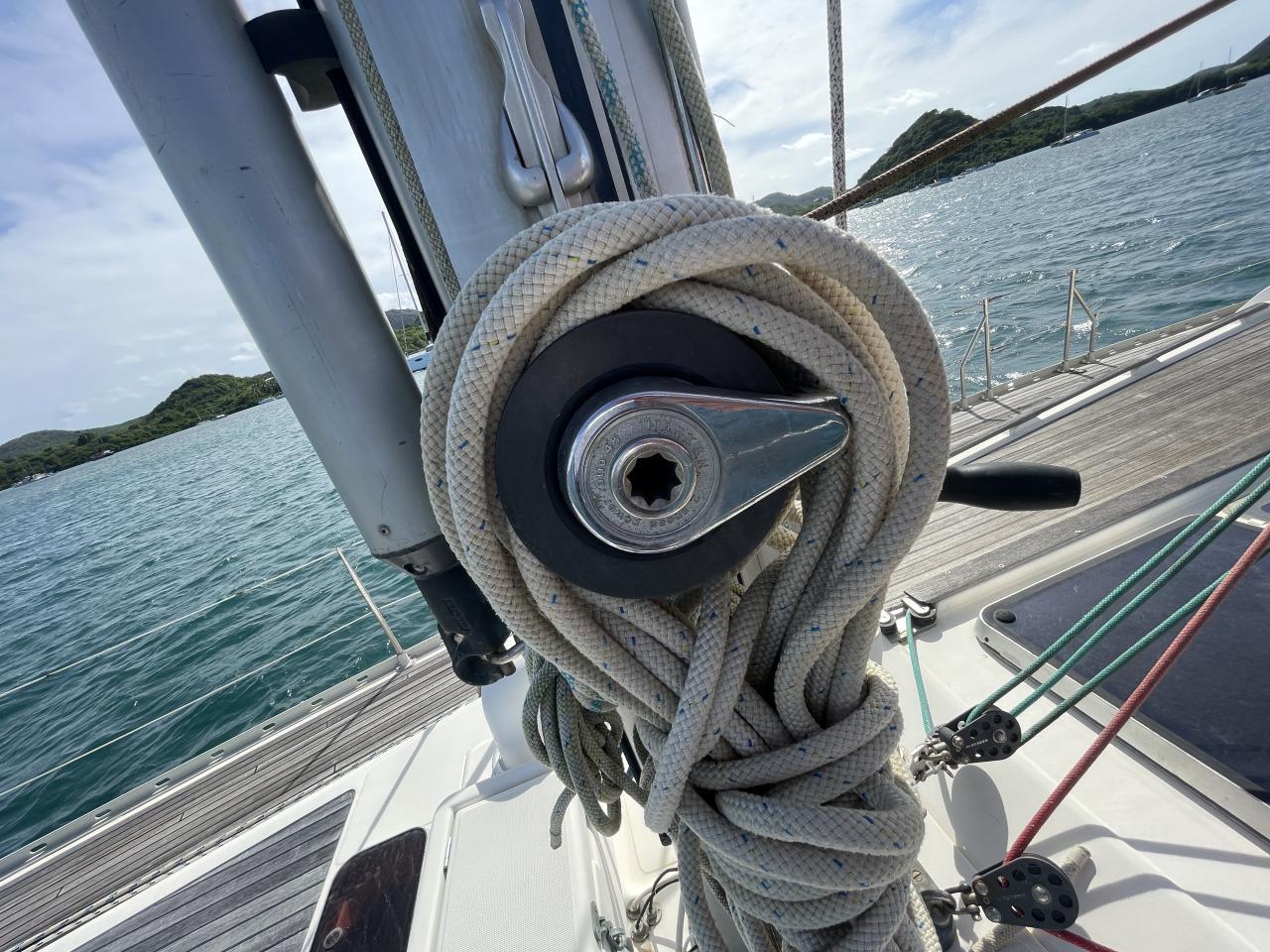 Deux winchs Harken 2-speed power ratio 45 au pied de mât