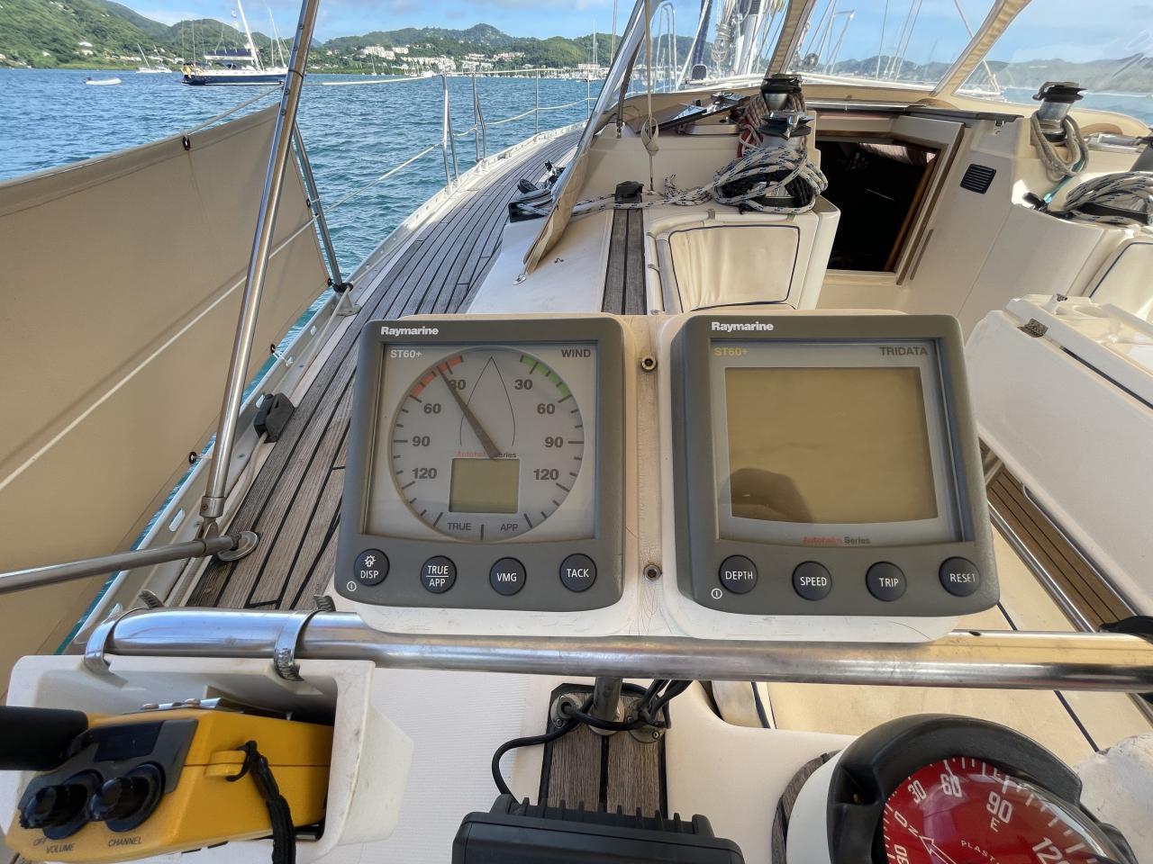 Centrale de navigation Raymarine avec loch, speedomètre, sondeur et girouette anémomètre