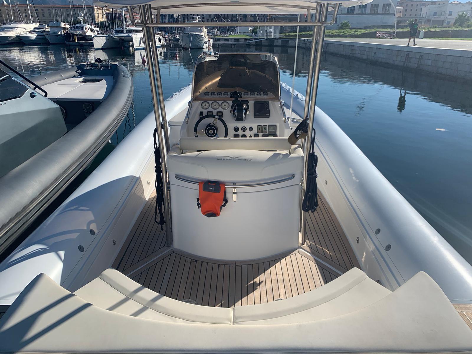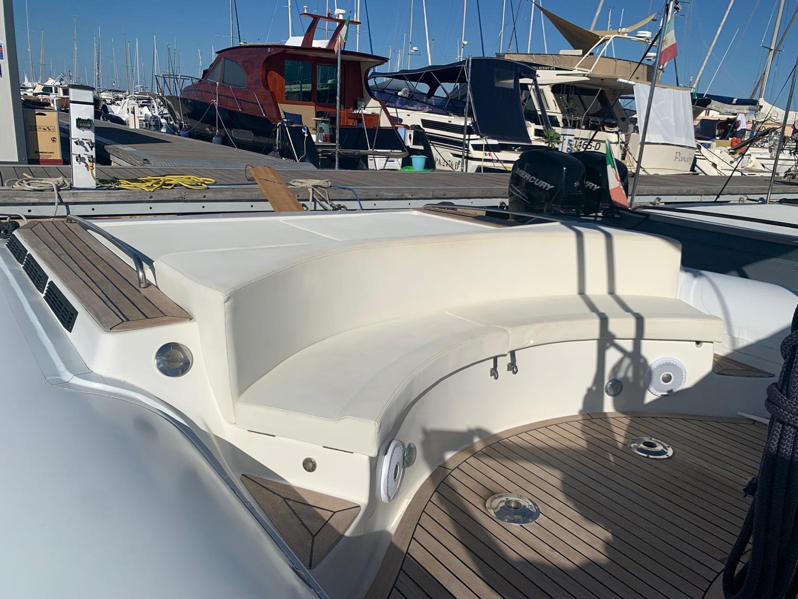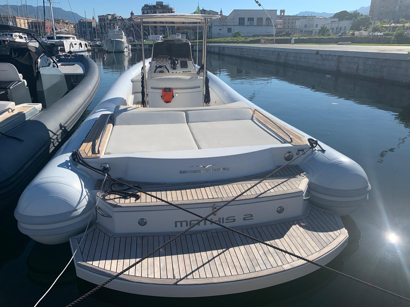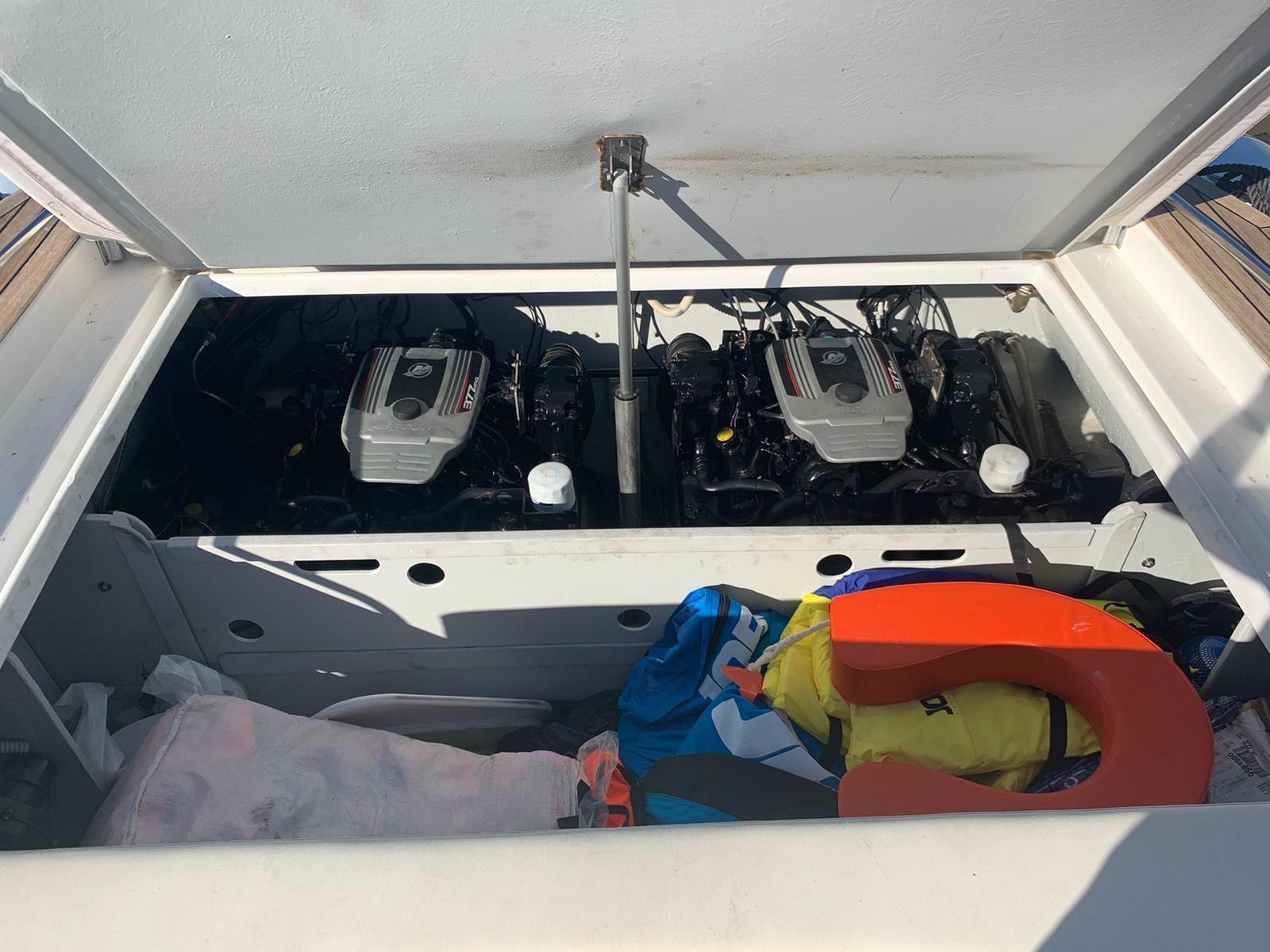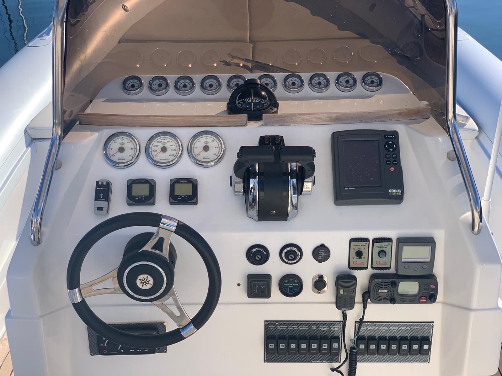MAGAZZU' MX-11 SPIDER DE 2008 AVEC DEUX MERCRUISER V8 320 ESSENCE AVEC 600 HEURES Panneau électrique avec dispositif magnétothermique. Main courante en acier inoxydable Actionneur électrique Compartiment moteur Guindeau électrique Couvercle de console Mât de drapeau avec drapeau Crochets en acier inoxydable pour ailes Auvent de pont en teck avec poteaux en acier inoxydable Table extérieure Douche extérieure Réfrigérateur électrique Feux de navigation et lumières de cockpit Boussole 2 réservoirs de carburant selon les normes CE Réservoirs d’eau Autoclave Ancre en acier inoxydable Lavabo extérieur Coussins complets dans la cellule 3 taquets oRMEggio 2 échelles escamotables EN OPTION T-TOP en acier inoxydable et toile EQUIPEMENT DE SECURITE 10 gilets de sauvetage 1 annulaire avec corde 1 bouée flottante avec kit de corde pour incendies, fusées éclairantes et bouées fumigènes 1 gaffe 1 trousse de secours 1 autogonflant 10 PAX dans un rayon de 12 nm ACCESSOIRES DE BORD 2 amarres de 16 mm 4 défenses 1 Boîte à outils 1 jumelles marines 7 x 50 1 ancre de 8,0 kg avec 50 m de corde PACK CONFORT Chargeur de batterie rapide 25 A système 220V avec prises Câble E Shore interne Gonfleur électrique 12V ELECTRONICS PACKAGE GPS Cartographique avec capteur d’écho VHF avec radio stéréo de détresse MP3 et haut-parleurs