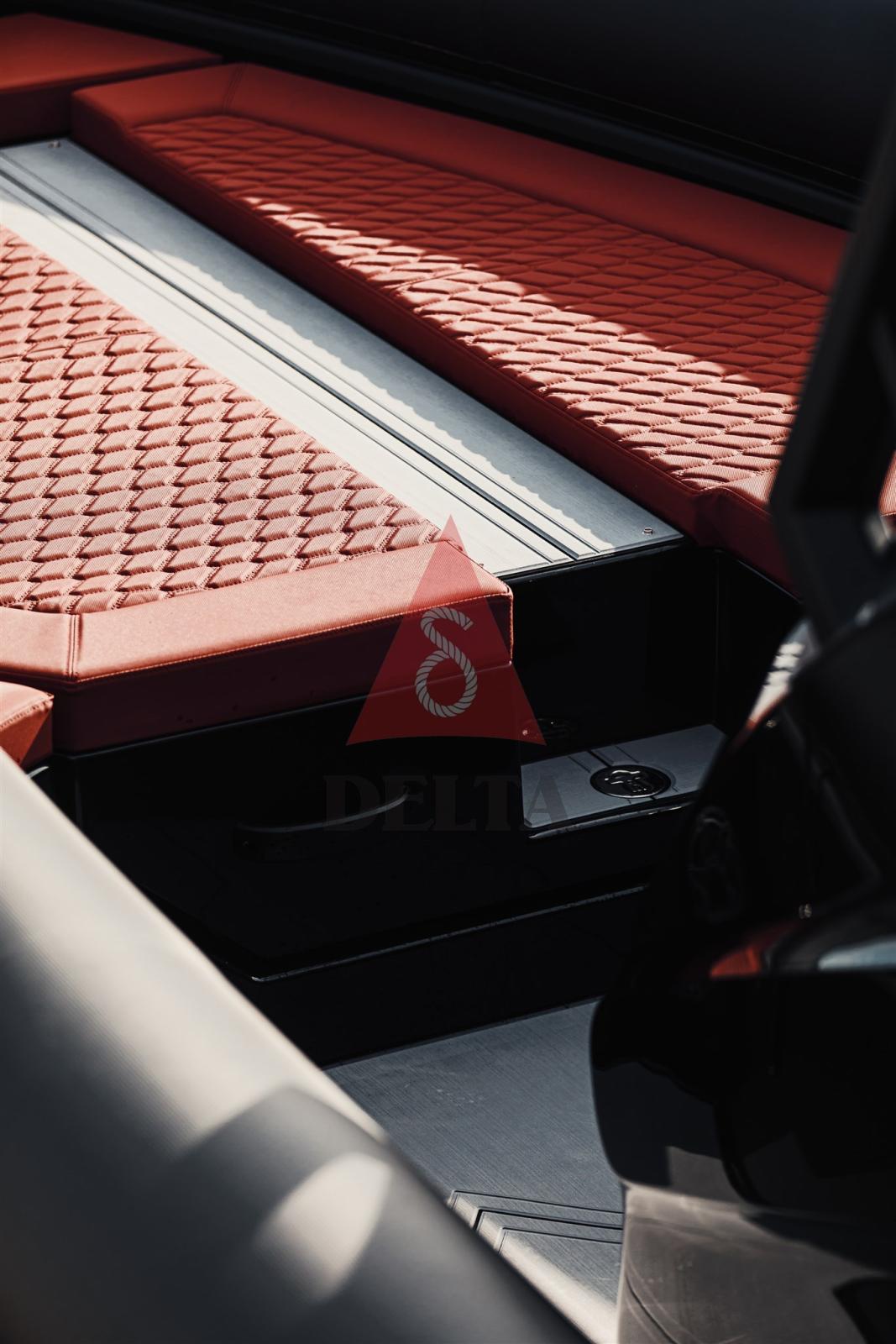 Le skipper 34 NC est un bateau pneumatique de 9,95 mètres de long caractérisé par une conception innovante en 4 étapes, qui produit une couche de bulles d’air entre la coque et l’eau, lui permettant d’atteindre des vitesses élevées. Le skipper 34 ne nécessite pas de gros moteurs, ce qui permet de réduire la consommation de carburant. Bien qu’il soit légèrement plus petit que les autres modèles, il offre un espace considérable pour les passagers. Le pont se compose de sièges confortables et de grands coffres à l’arrière et à l’avant. Sous la console, il y a aussi une petite salle de bain avec lavabo et douche, idéale pour les sorties en dehors de la ville.